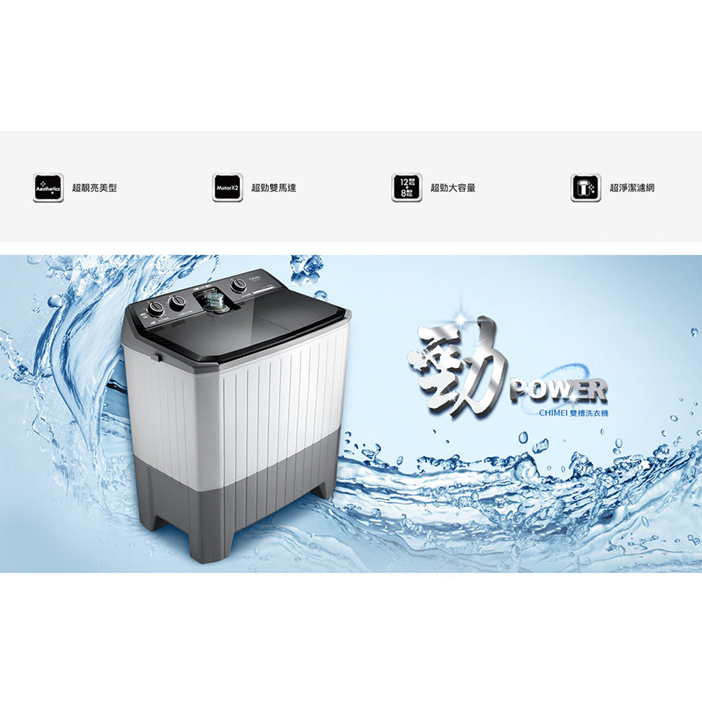 奇美CHIMEI|12kg/8kg 雙槽洗衣機 WS-P128TW