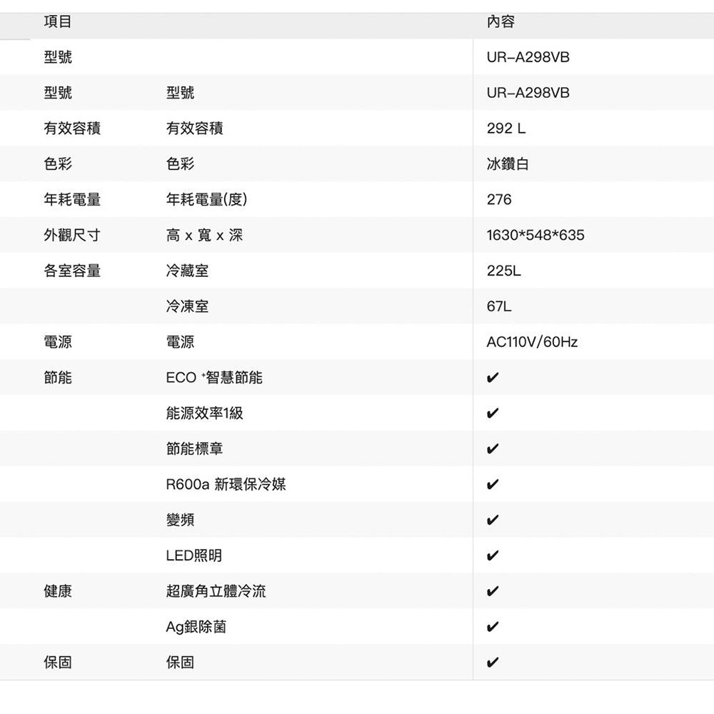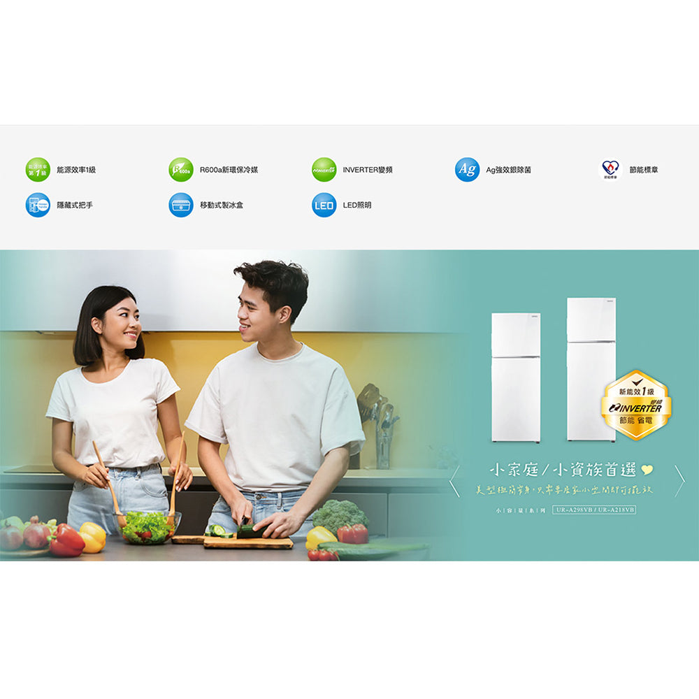 奇美CHIMEI|298L 雙門變頻冰箱UR-A298VB