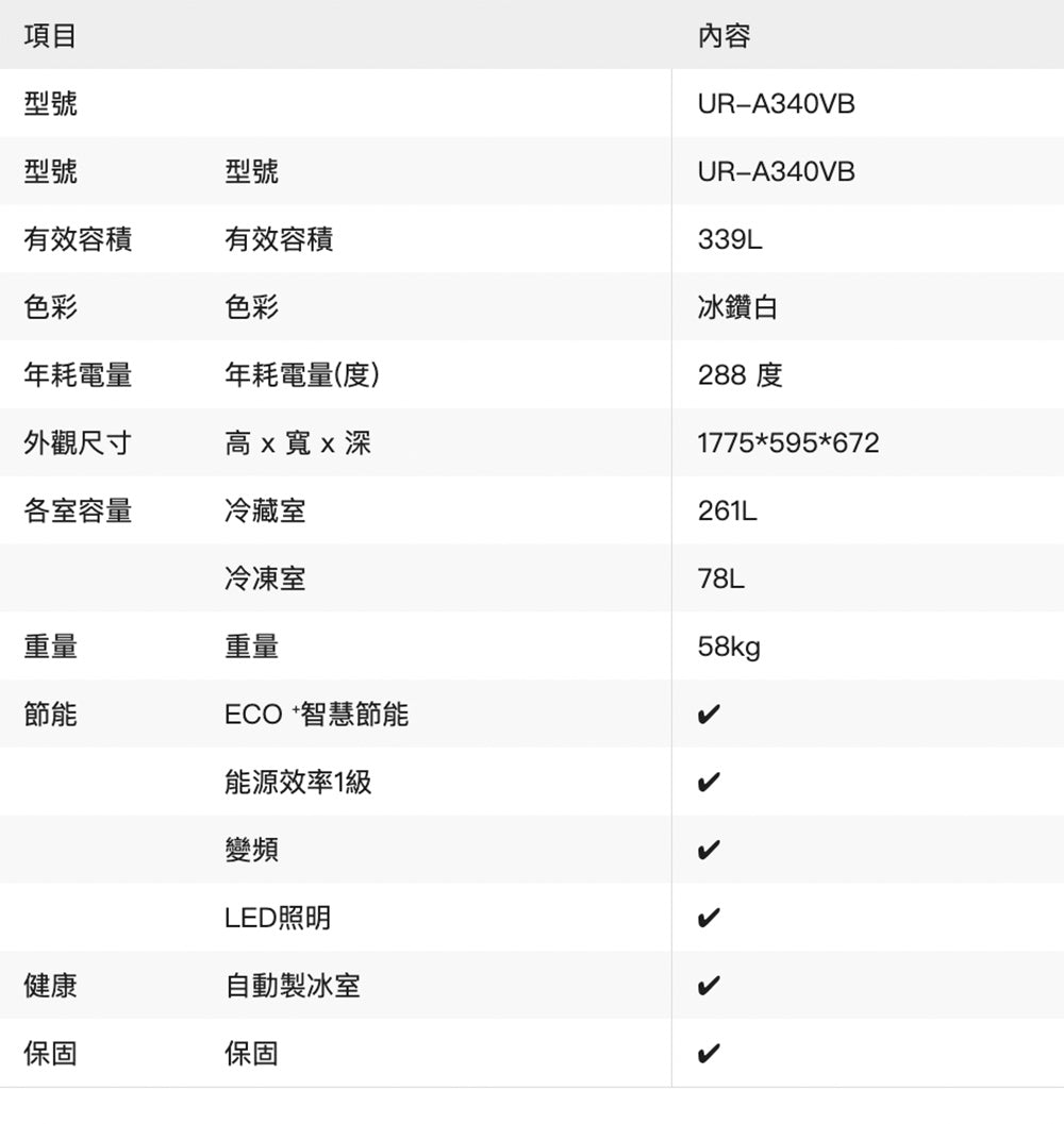 奇美CHIMEI|340L變頻二門冰箱UR-A340VB