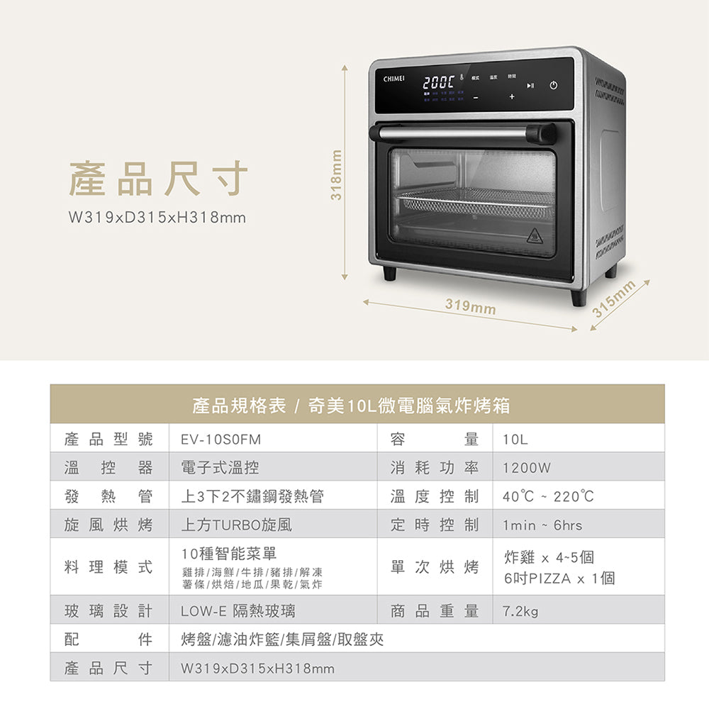 奇美CHIMEI|EV-10S0FM 10L微電腦多功能氣炸烤箱