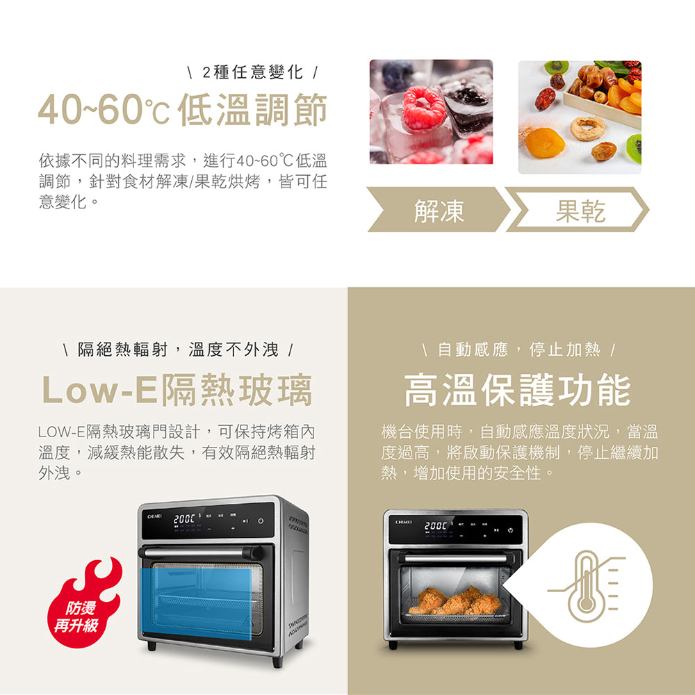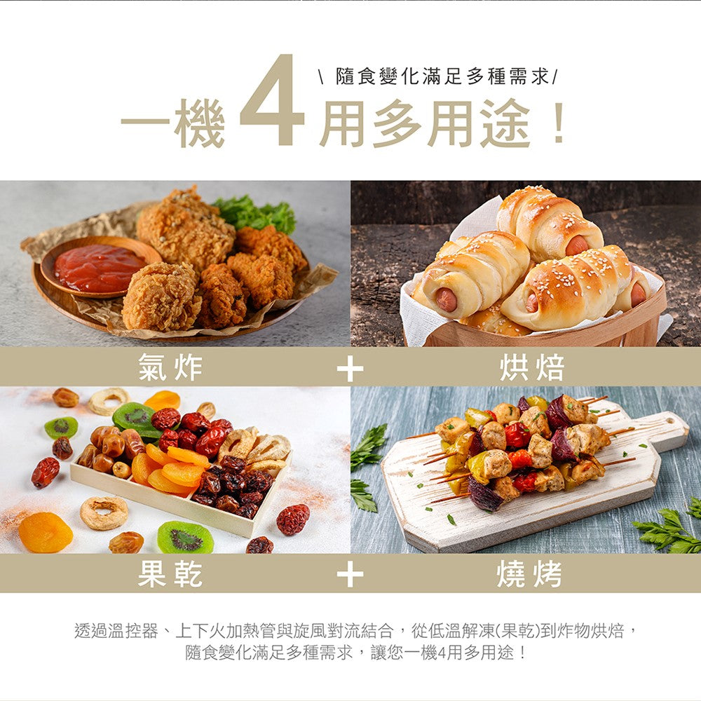 一機4用氣炸/烘焙/果乾/解凍 NTC電子式溫控,精準控溫 微電腦智能菜單/10種料理模式