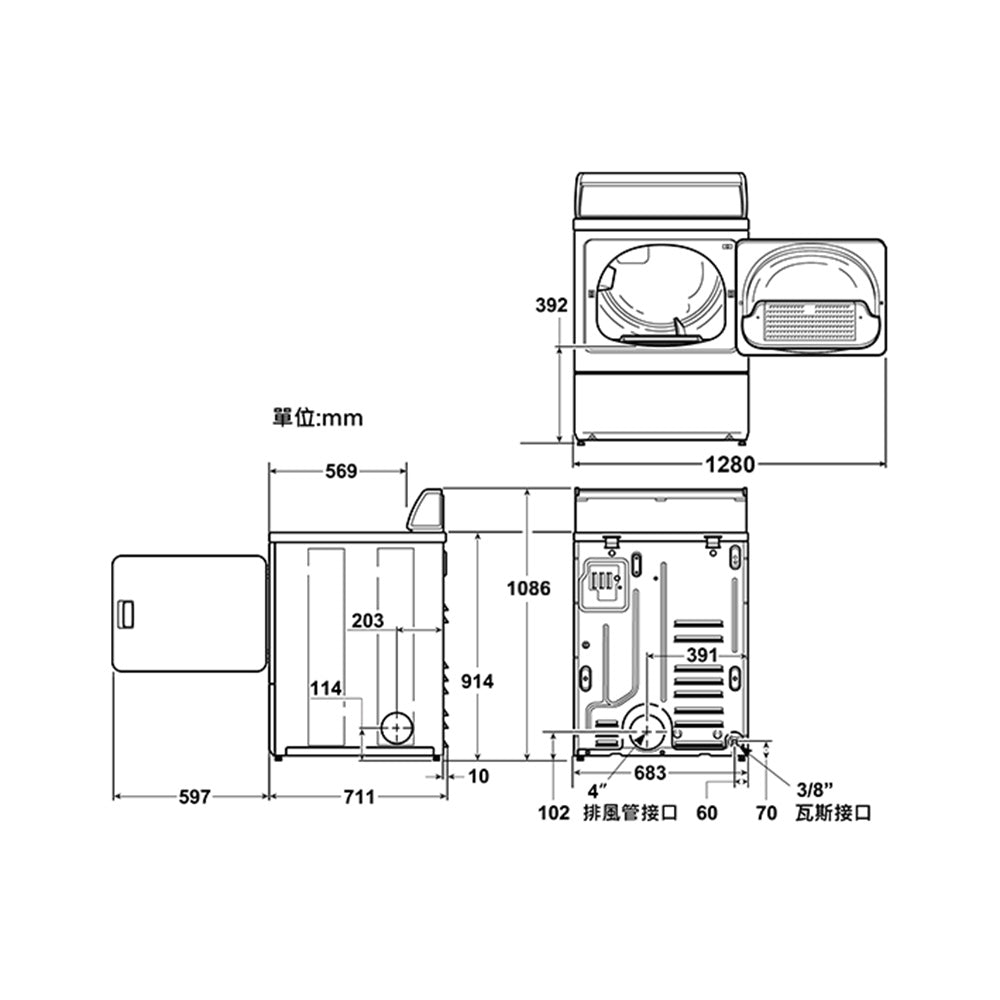 優必洗Huebsch|直立前開後控式乾衣機(電力型)ZDEE9RGS545FW01
