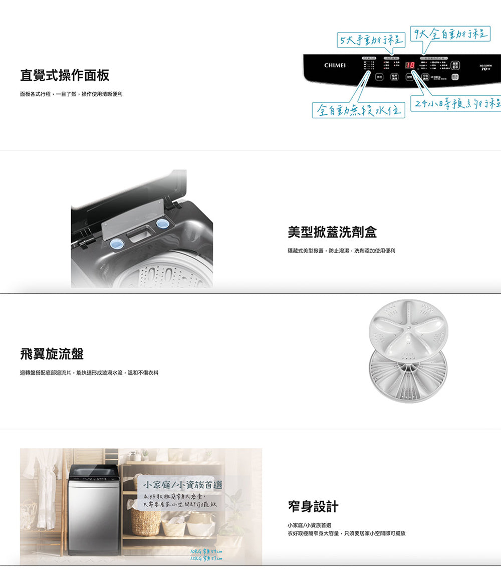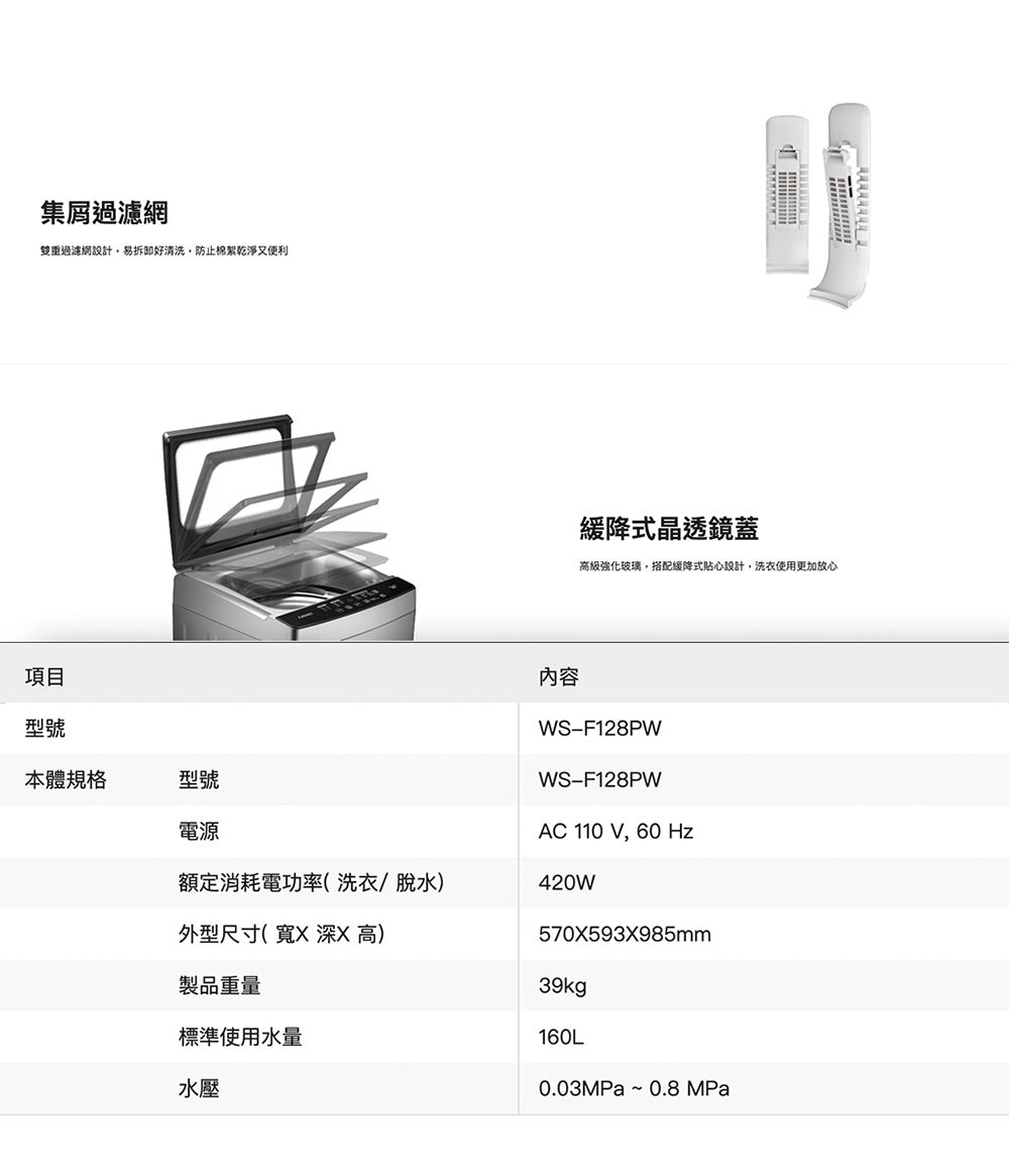 奇美CHIMEI|12kg 定頻直立式洗衣機 WS-F128PW
