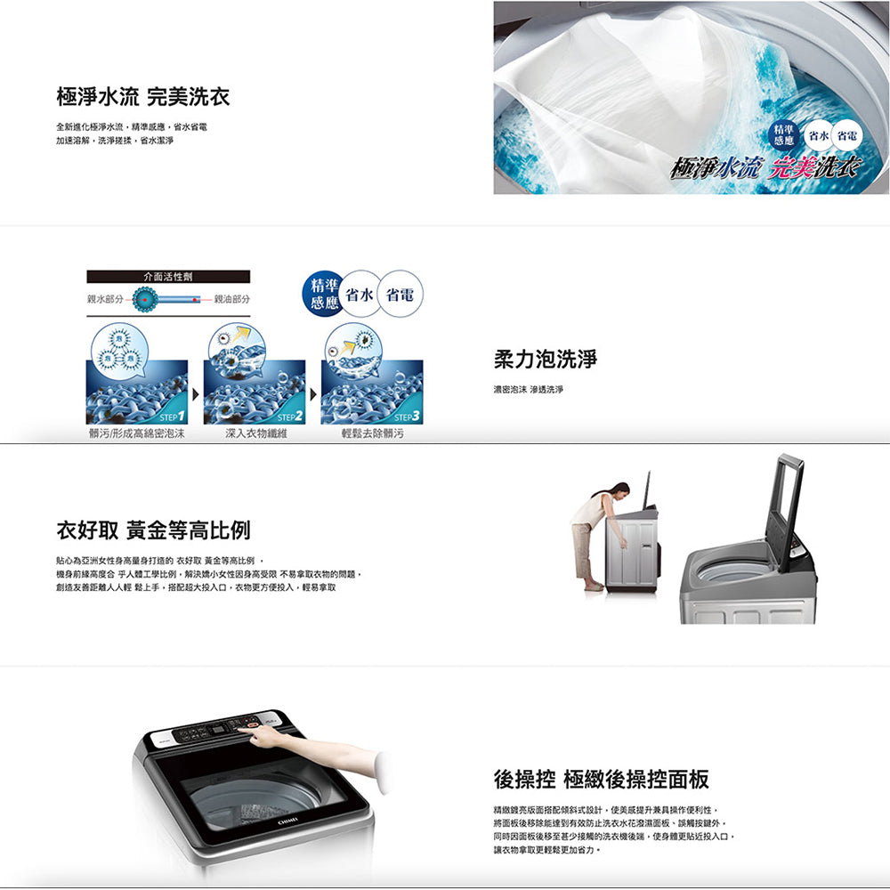 智慧極淨水流 U-Bar抗震靜音側板 極緻後觸面板