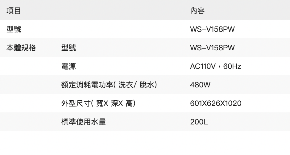 奇美CHIMEI|15kg 變頻直立式洗衣機 WS-V158PW
