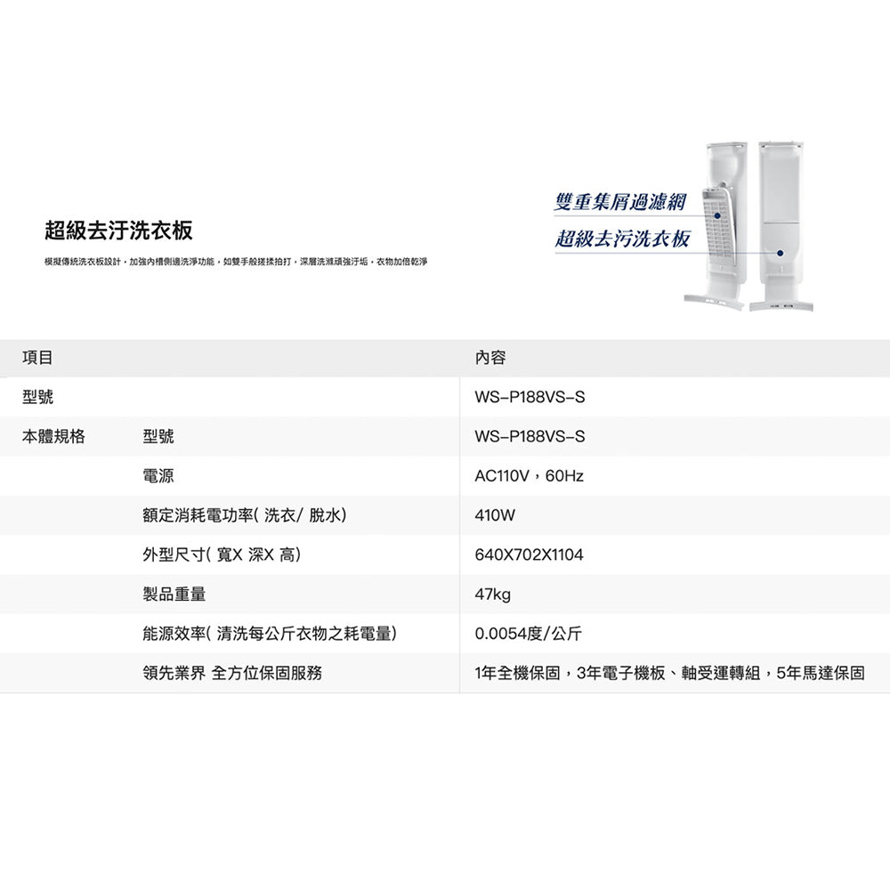 奇美CHIMEI|18kg 變頻直立式洗衣機 WS-P188VS-S