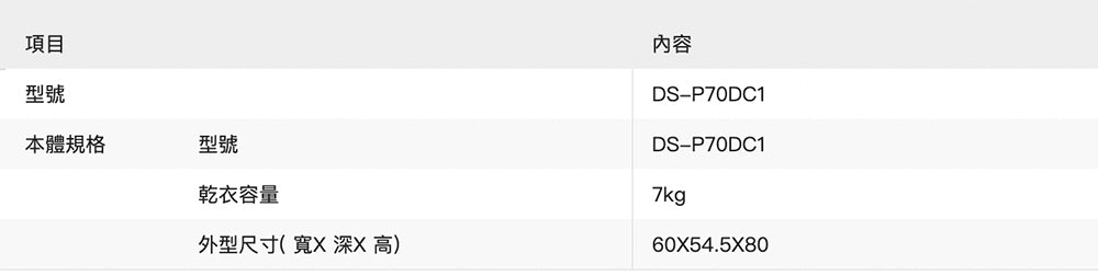 奇美CHIMEI|7kg 好心晴PTC乾衣機 DS-P70DC1