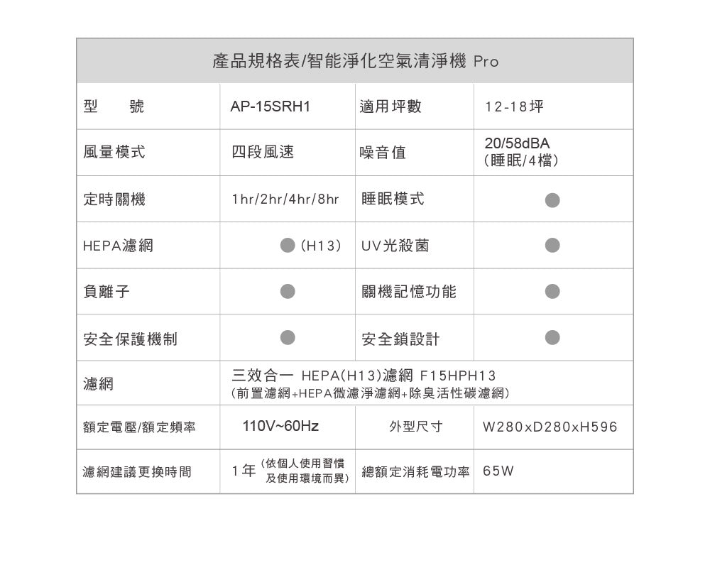 奇美CHIMEI|AP-15SRH1 12-18坪 智能空氣清淨機