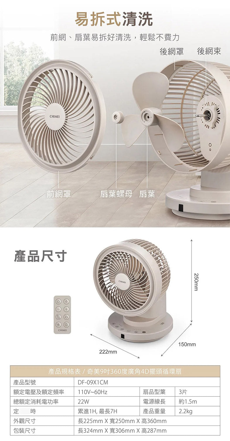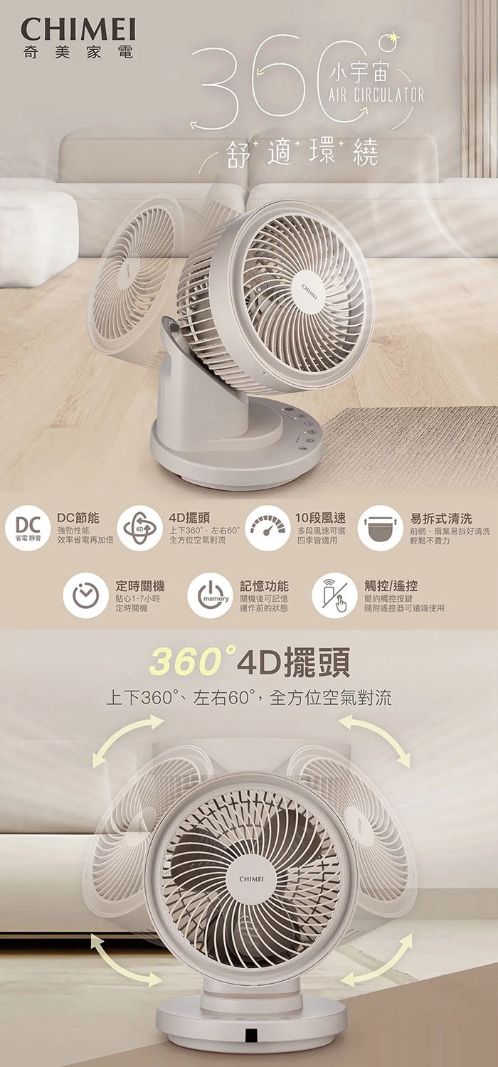 奇美CHIMEI|DF-09X1CM 9吋360度廣角4D擺頭循環扇