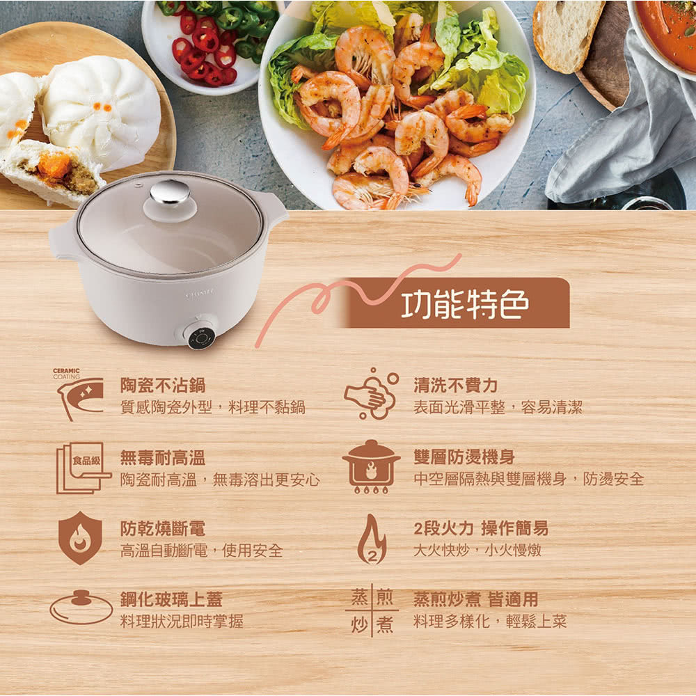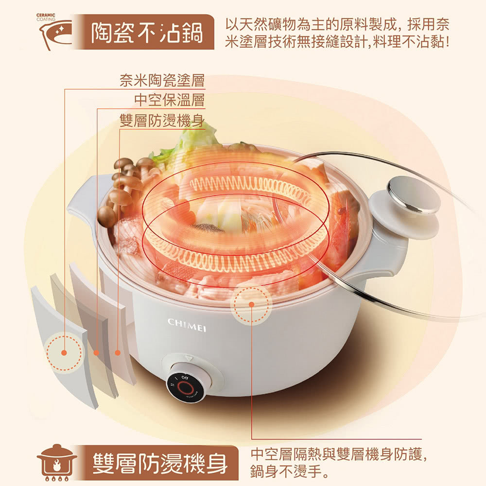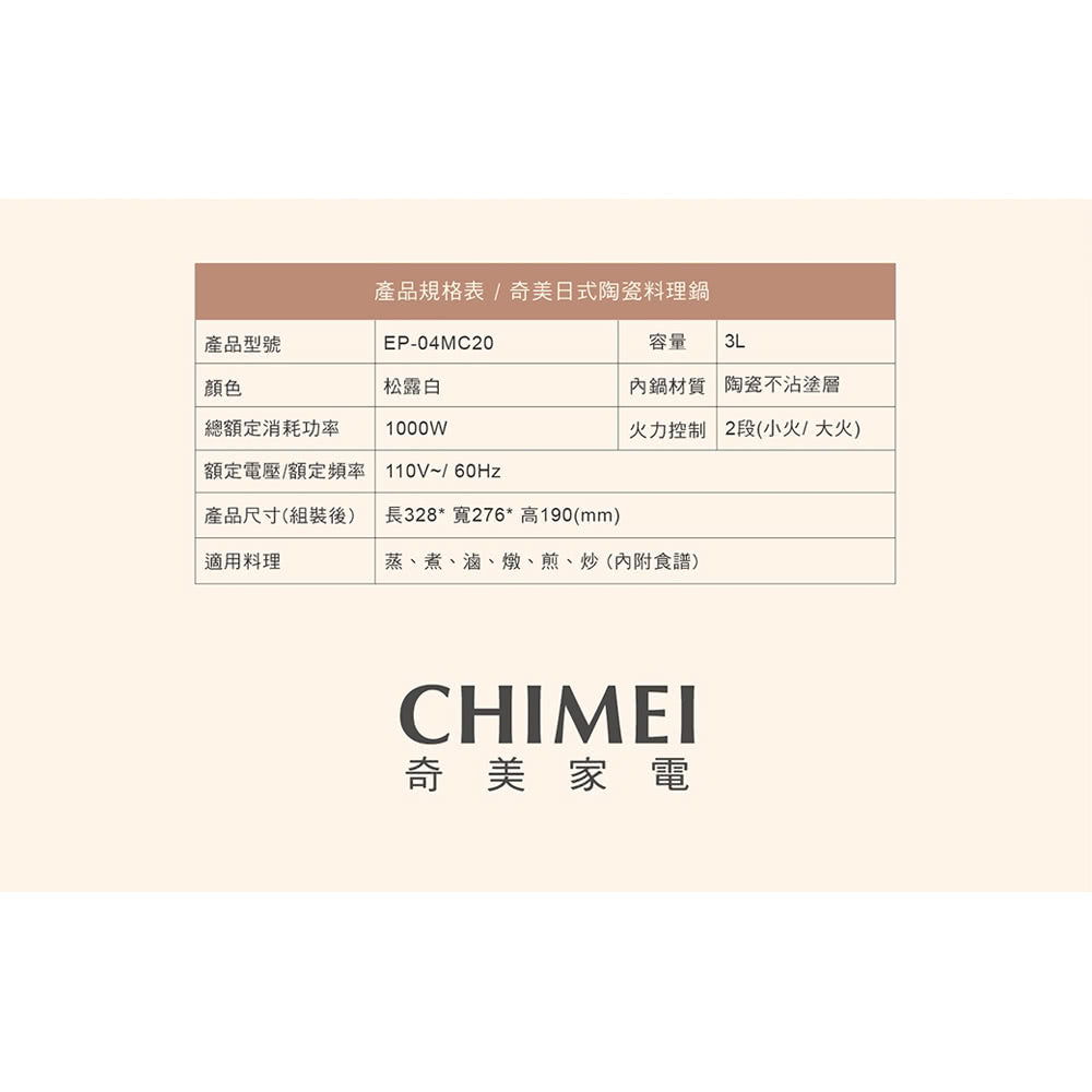 奇美CHIMEI|EP-04MC20 3L 日式奶油陶瓷不沾料理鍋