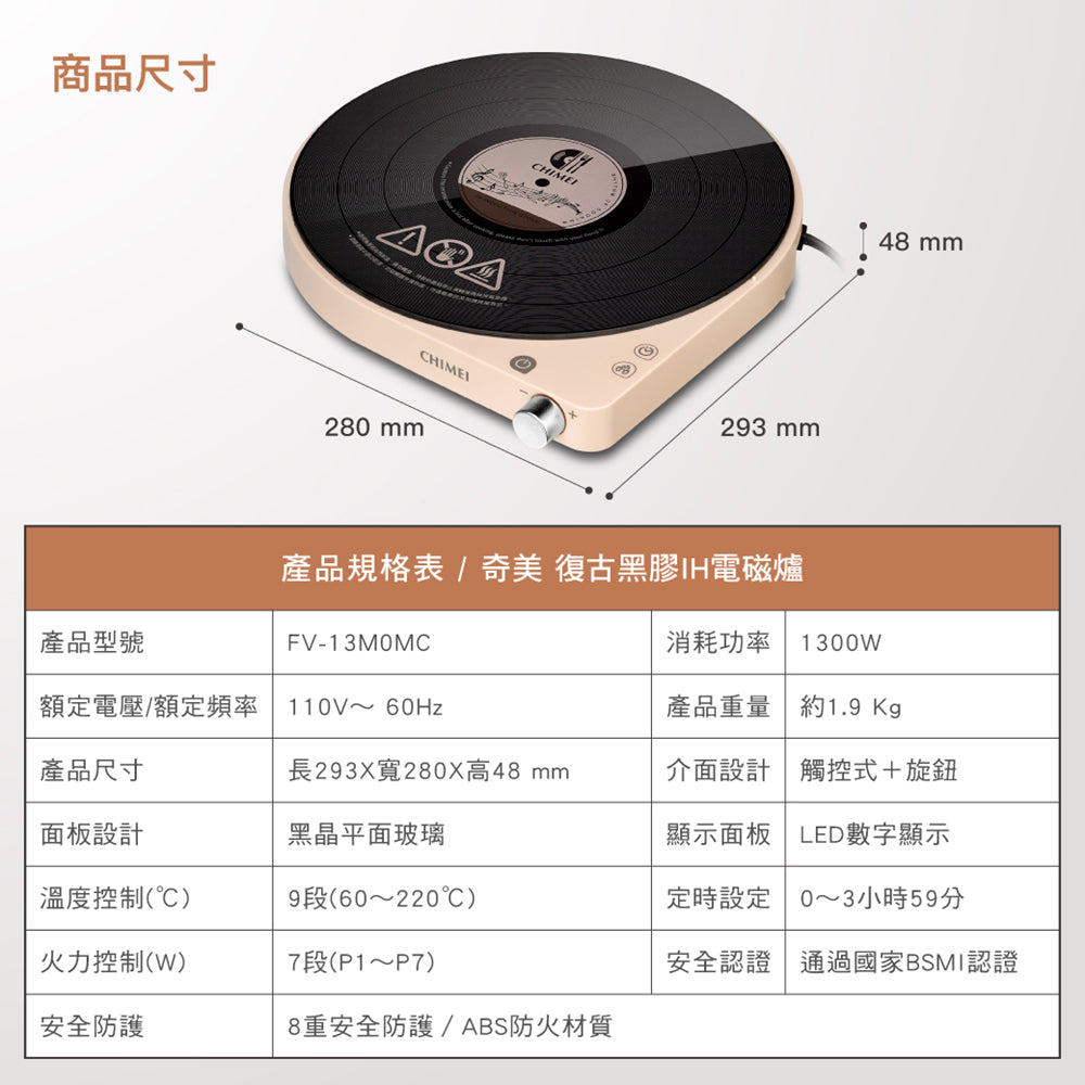奇美CHIMEI|FV-13M0MC 復古黑膠IH變頻電磁爐