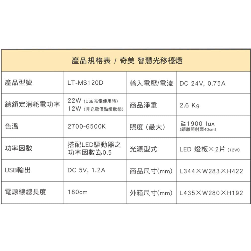 奇美CHIMEI|LT-MS120D 時尚LED 智慧光移桌燈檯燈