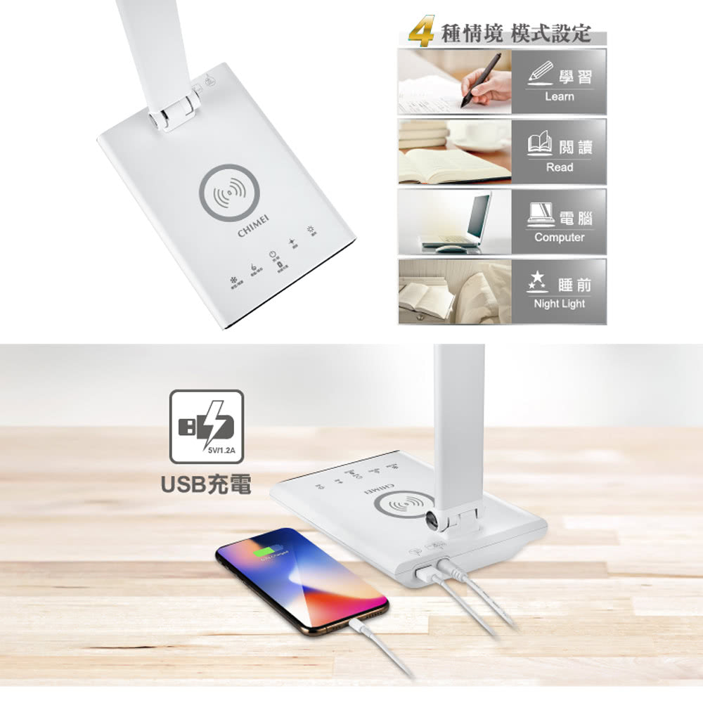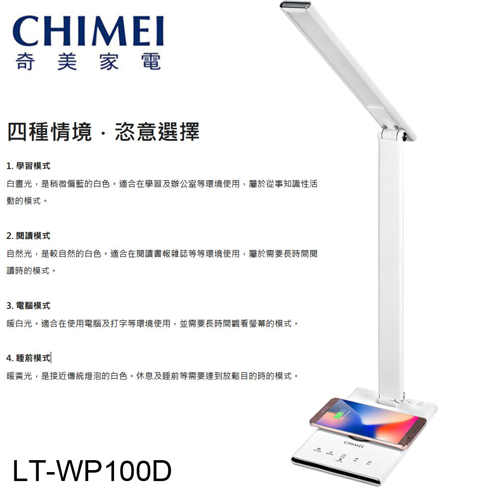 奇美CHIMEI|LT-WP100D 時尚LED QI無線充電護眼檯燈