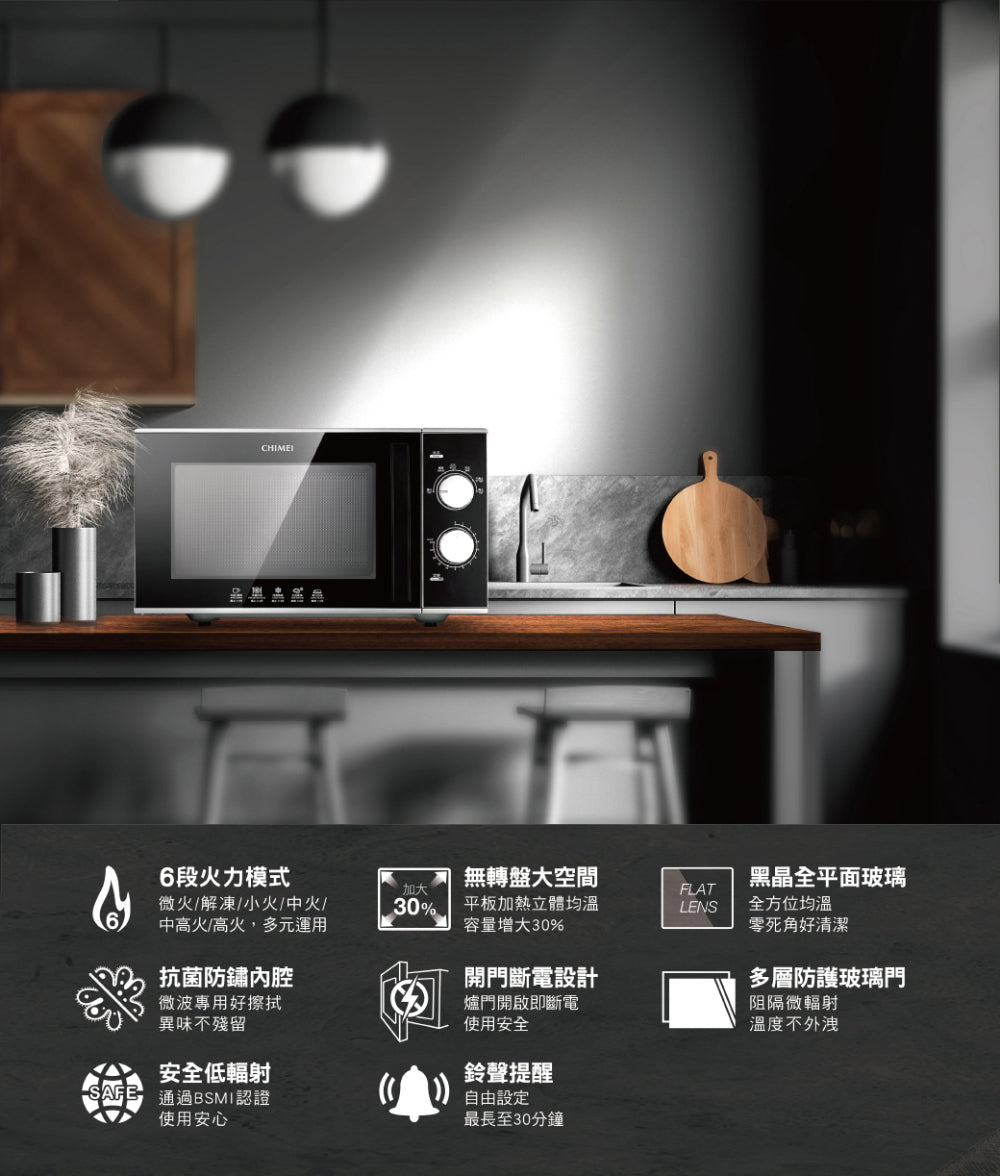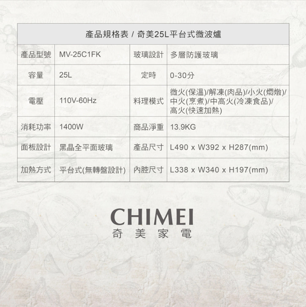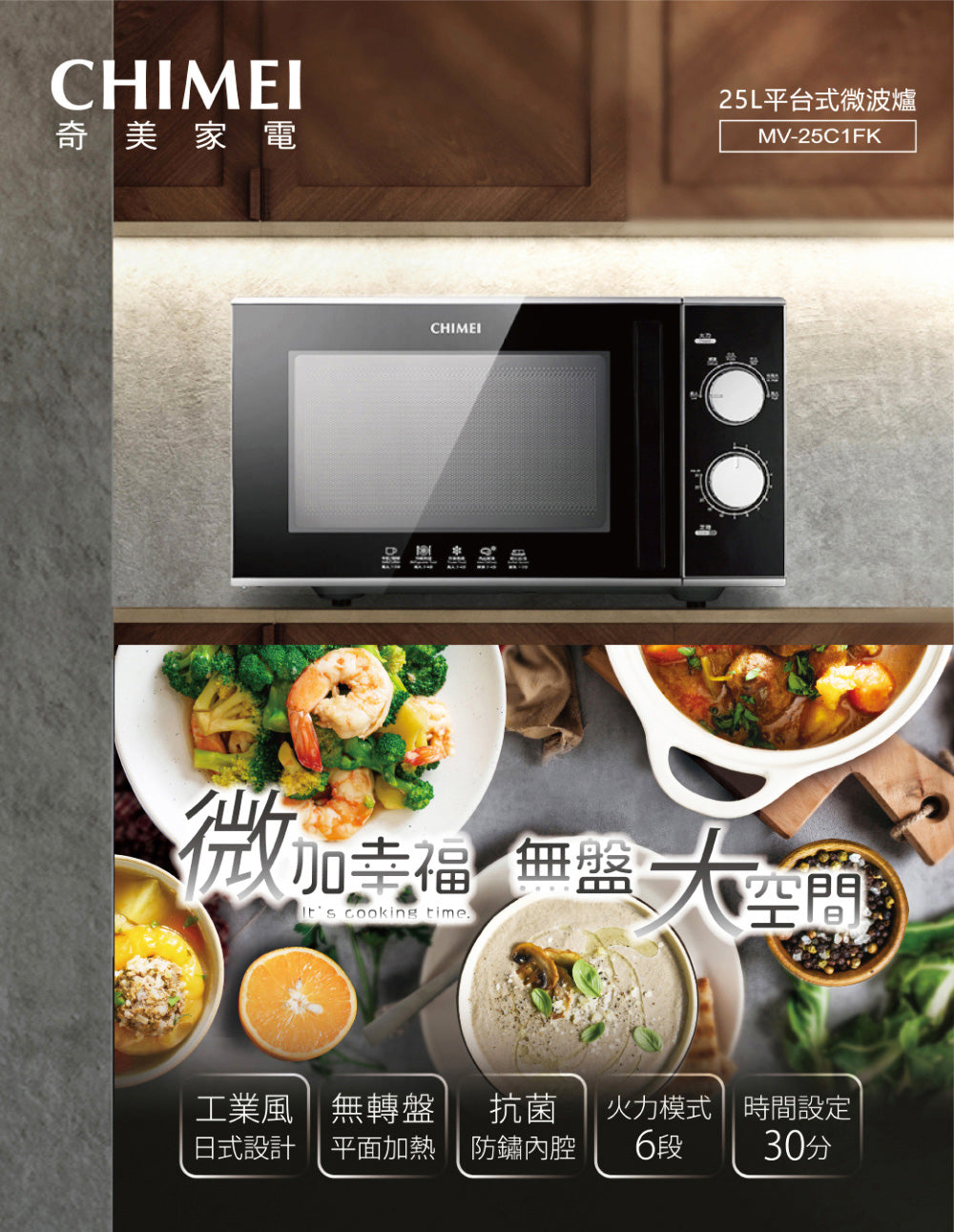 奇美CHIMEI|MV-25C1FK 25L黑晶平台機械式微波爐