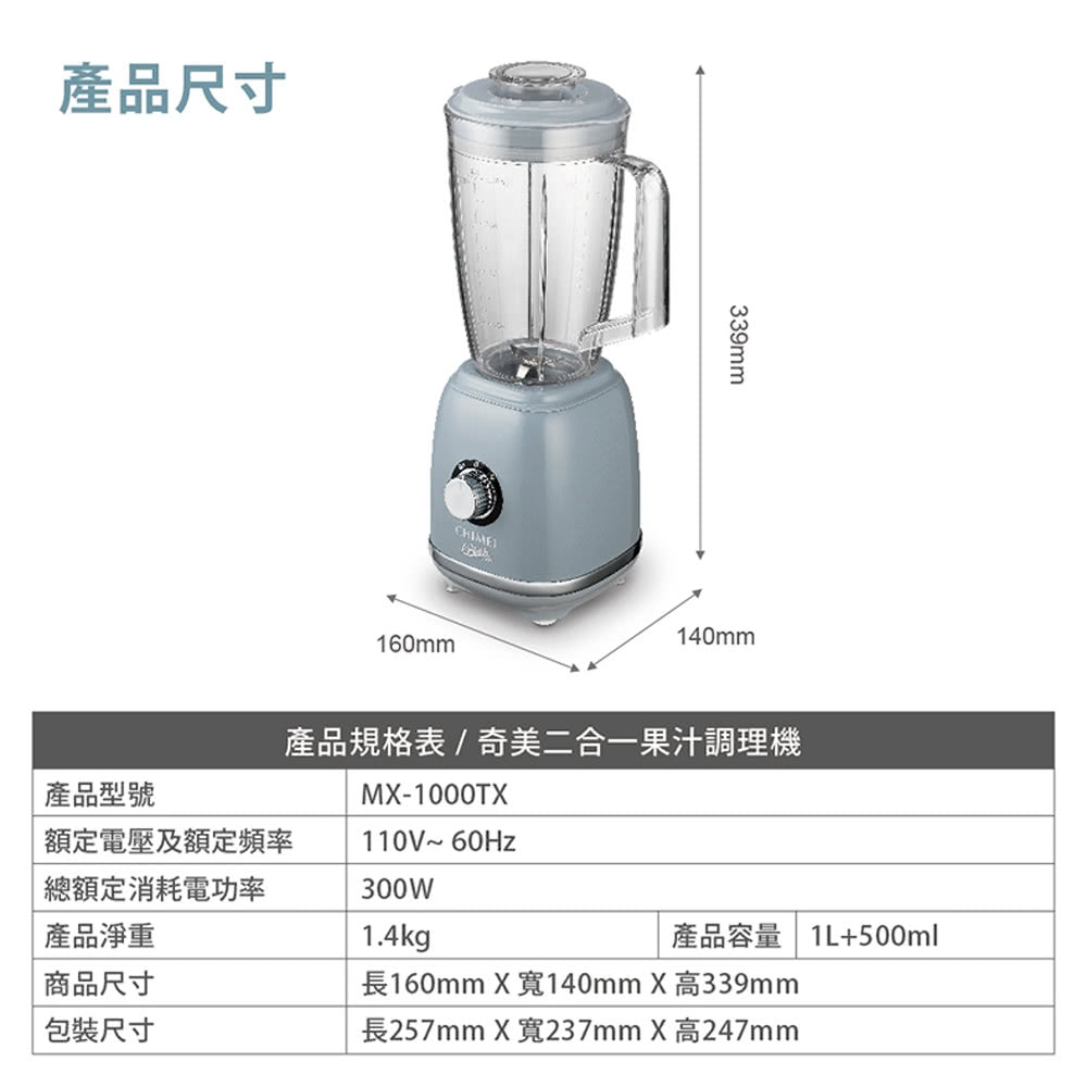 奇美CHIMEI|MX-1000TX 1000ml復古美型多功能果汁機