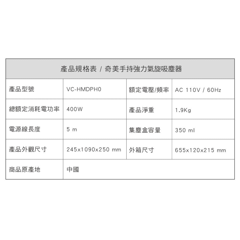 奇美CHIMEI|VC-HMDPH0 手持強力氣旋吸塵器