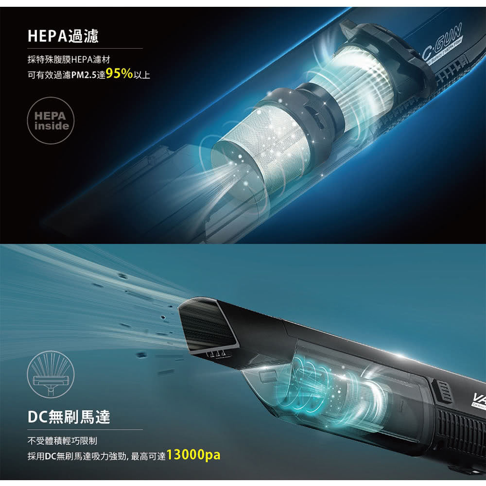 高效濾網,可水洗重複使用 多種刷頭與連接管,方便清掃 HEPA濾網有效過濾PM2.5
