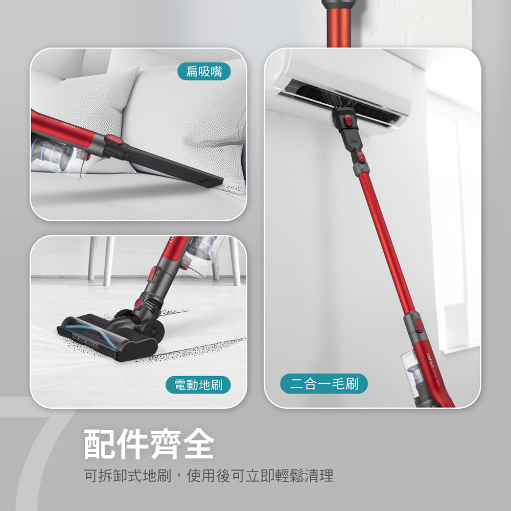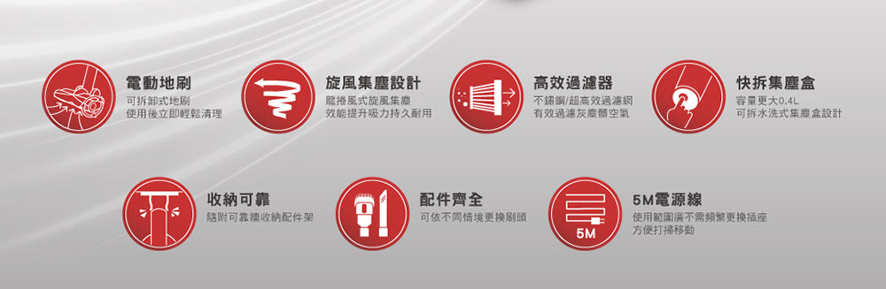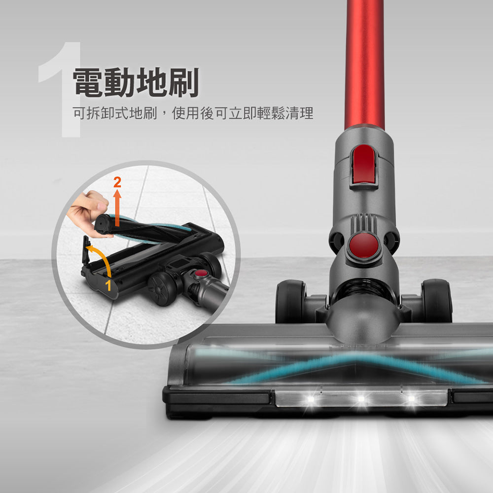 電動地刷、可拆卸式好清理 龍捲風式旋風集塵、提升吸力 可依不同情境更換刷頭