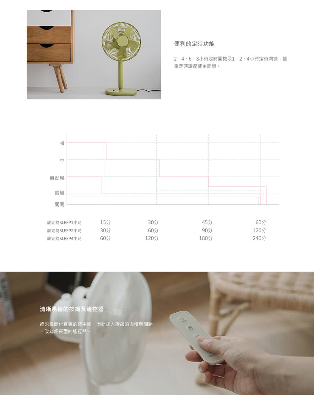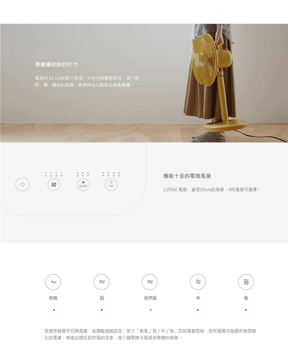 恰到好處的舒適/ 與室內裝潢合為一體/ 操作簡單易懂,功能多樣化/ 體積小風量卻毫不遜色/ 遙控器內建磁鐵設計/ 使用方法更廣泛多元