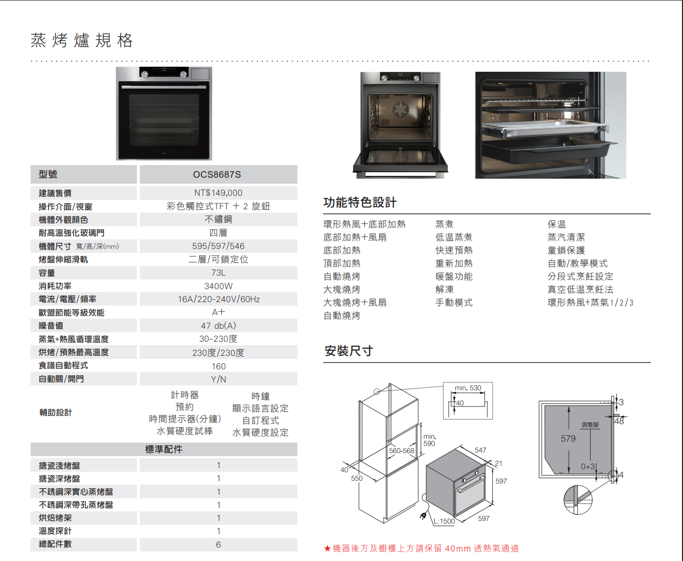 OCS8687S秉承ASKO一貫的設計美學,一款功能強大且高品質的蒸烤爐。一體全框式不鏽鋼裝飾面板搭配TFT全觸控彩色螢幕,適合當代設計感的廚房,用蒸汽烹飪出美味健康的食物。此款型號是您廚房的不二之選。 ※此商品為預購商品,確切安裝時間將由客服人員與您接洽。