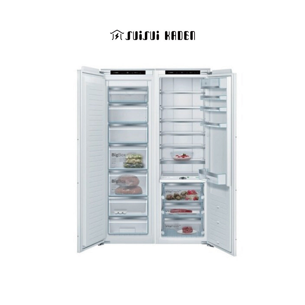 LED照明:為冰箱內的食材提供照明。 VarioShelf 摺疊層架: 彈性空間調整,便於放置長型瓶罐或大型器皿 SuperCooling急速冷藏: 急速上鎖食材鮮度 連接性:通過智慧型手機或平板電腦遠端監控冰箱。 SuperFreezing急速冷凍: 增添冷凍食材不退凍 Bosch快速製冷無霜科技 BigBox大型儲存盒,存放許多特大份量的冷凍食品 連接性:通過智慧型手機或平板電腦遠端監控冰箱。