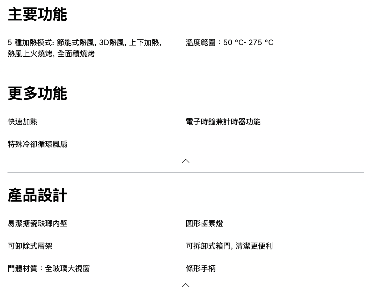 節能式熱風:在烘烤和烘焙時節省能源。 3D熱風:將熱氣均勻地布滿烤箱每一層,出色美味,層層盡享