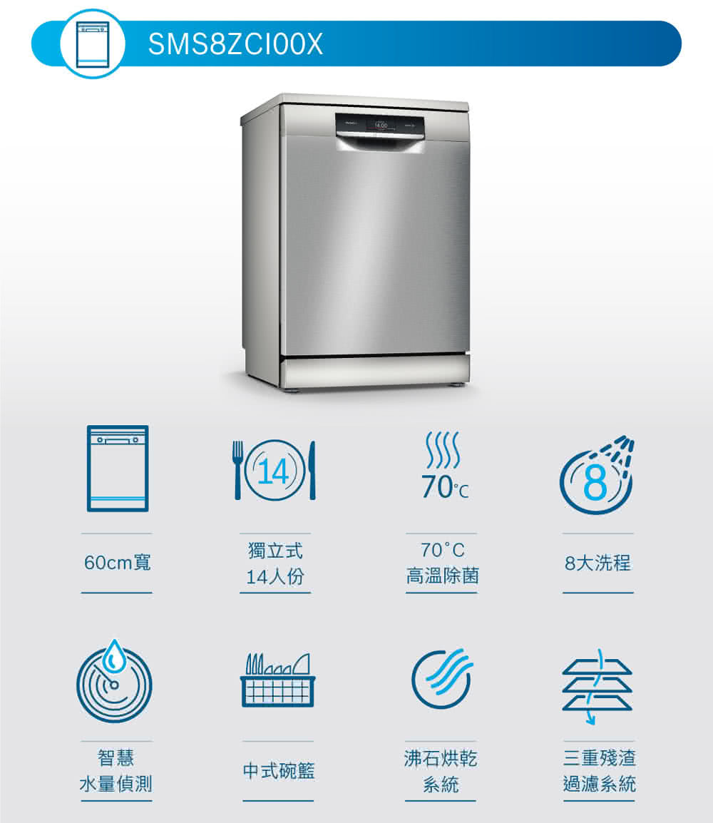 BOSCH博世|SMS8ZCI00X 8系列 獨立式洗碗機 60 cm