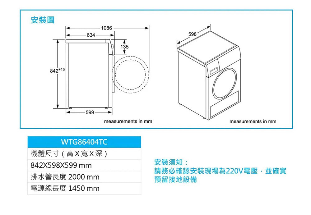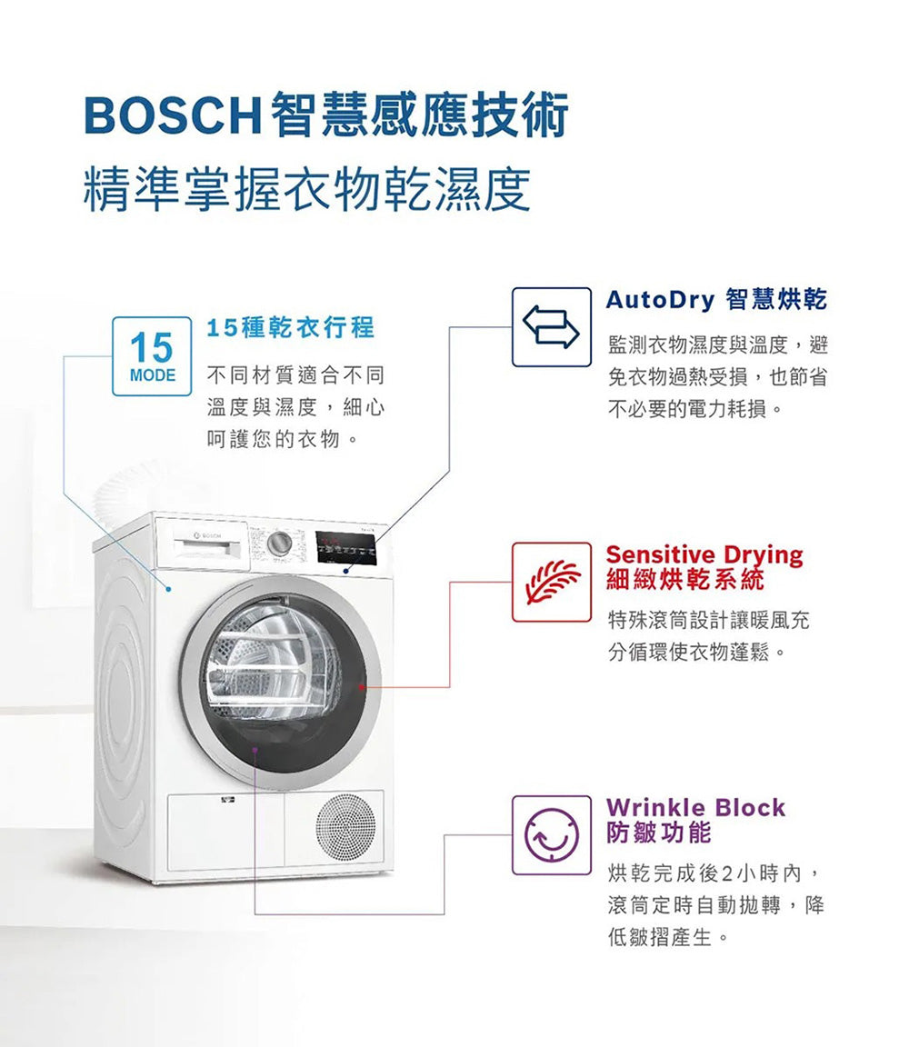 BOSCH博世|WTG86404TC 6系列 冷凝式乾衣機