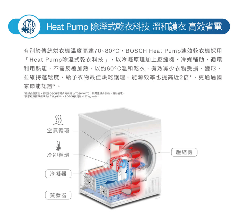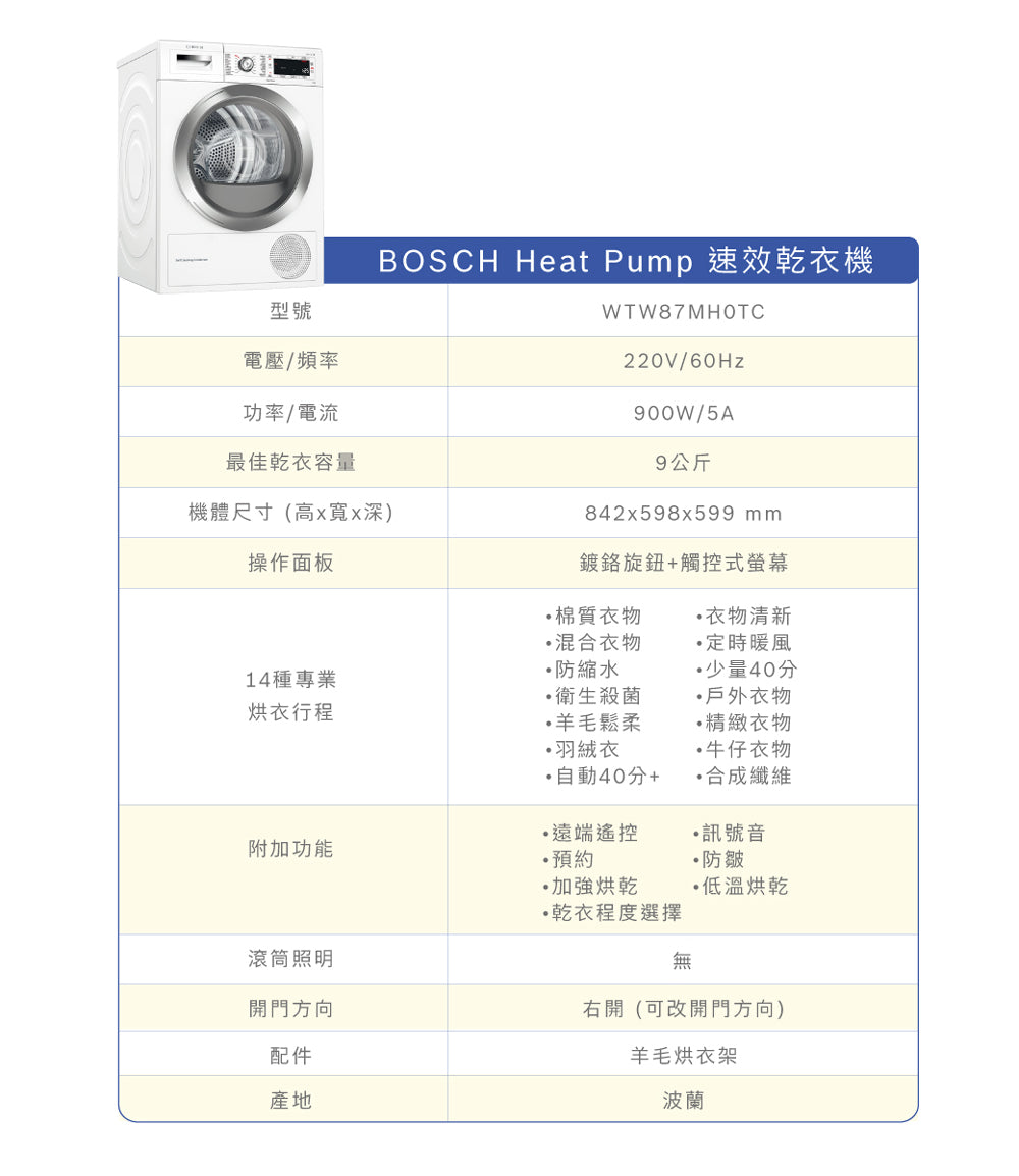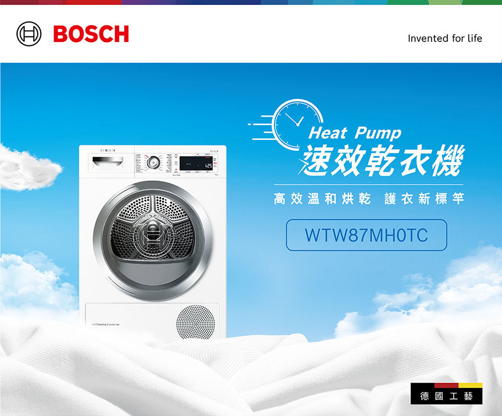BOSCH博世|WTW87MH0TC 8系列 熱泵式乾衣機