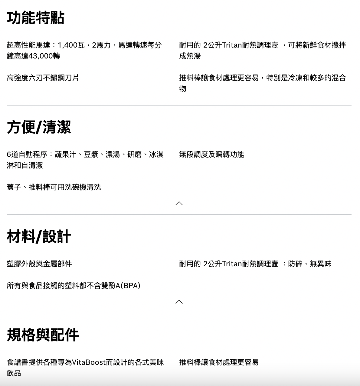 Tritan調理壼:耐用的2公升Tritan耐熱調理壼 (不含BPA) - 輕鬆處理大量食材 不含BPA的零件:健康,安全,方便地準備您的餐點 易於清理:全自動的自清潔程序及部份零件可用洗碗機清洗 超高性能:1400瓦的功率和高達43,000 rpm的電機速度在創紀錄的時間內獲得了出色的結果 包含超過30個食譜,有沙冰、奶昔等,並且提供健康飲食小秘訣