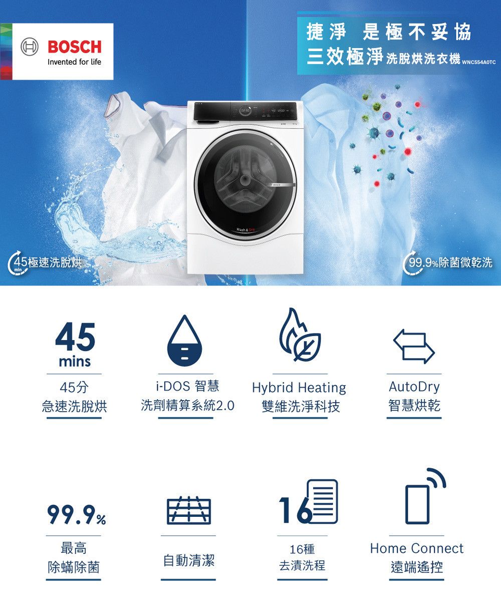 BOSCH,博世,WNC554A0TC,洗脫烘滾筒洗衣機,洗脫烘,滾筒洗衣機