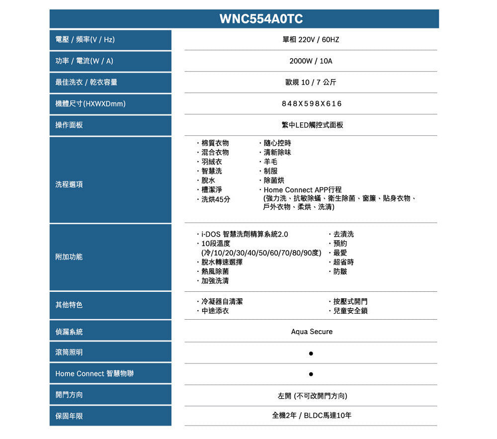 BOSCH 博世|WNC554A0TC 洗脫烘滾筒洗衣機 洗衣10kg 乾衣7kg (220V)