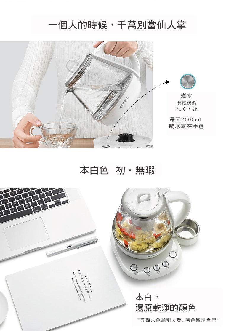 北鼎Buydeem,全球化智能溫控的廚電專家,以優異的生產技術、頂極的嚴選原料、智能的溫控科技、嚴苛的品質管控、全方面的需求規劃,設計出最適合亞洲飲食習慣的多功能烹煮壺,一鍵搞定繁複的營養學,讓您隨時都上“飲”。