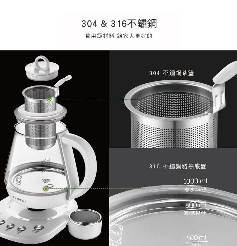 BUYDEEM北鼎|玻璃養生快煮壺ONE用壺1L-K2201
