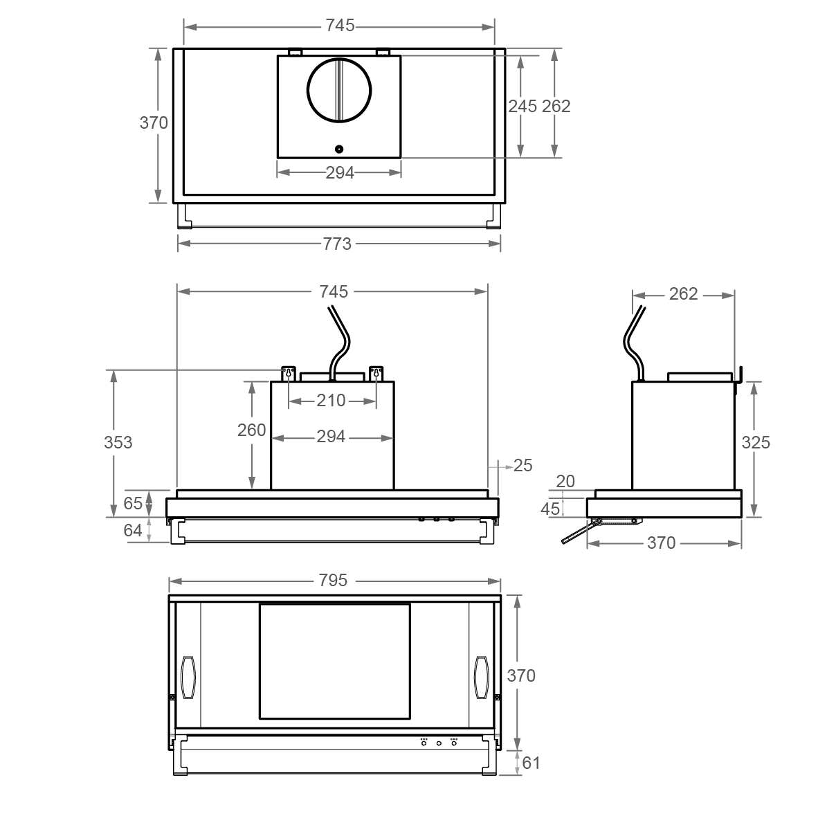 • 風量:強830 / 中 590 / 弱370  (m3/hr.)