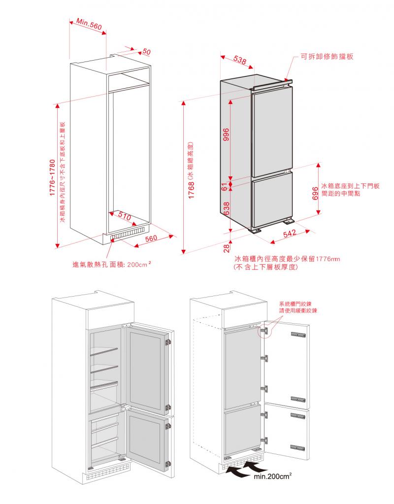 Franke|CANDY 嵌入式電冰箱 CBF18D-TWN