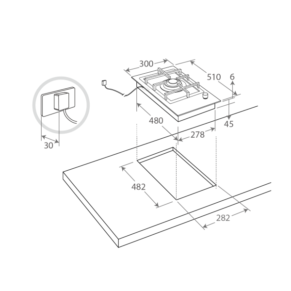 插頭預留尺寸 :D30mm(建議參考值)
