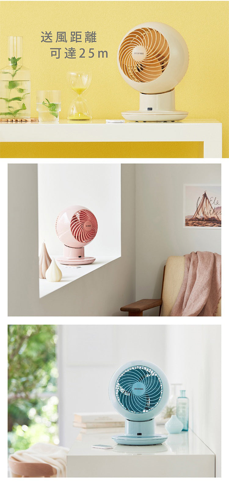 特殊設計集中強力渦漩氣流,送風距離可達25m