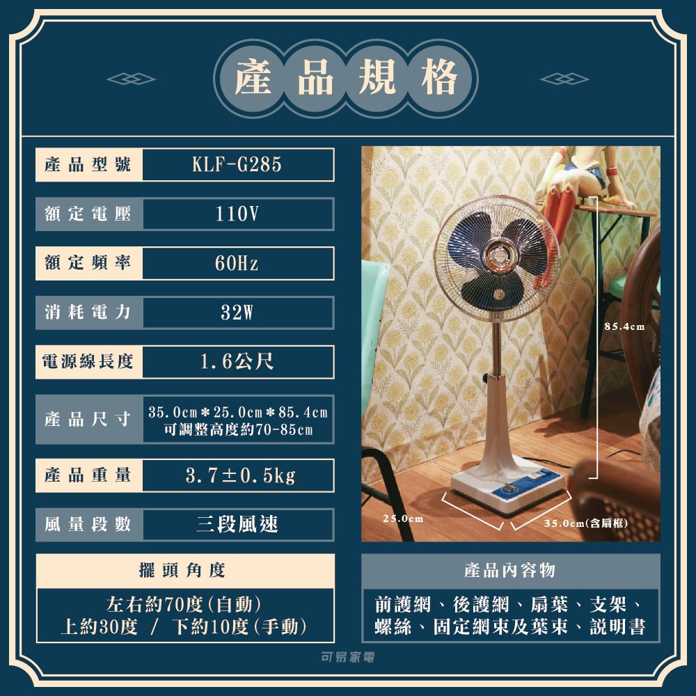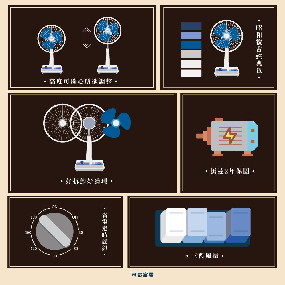 復古經典配色,百搭好看/復古按鍵,操作直覺 三段風量,暖冷自知/計時旋鈕,聰明省電 配件可拆,清潔方便/馬達2年保固最安心