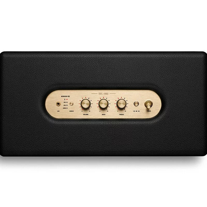 作為家用喇叭系列中的重量級產品,WoburnIII在各種場景下都能帶來沉浸感與空間感十足的Marshall標誌性音質。經過重新設計,搭載三分頻系統:▲更強大的6英寸低音單元的低音反射箱體。▲兩個3/4英寸高音單元和兩個2英寸中音單元。▲更清晰的中音、清脆的高音和更強勁的低音。▲低音接近人耳可感知的最低頻率。這款喇叭還增設了傾斜放置的高音單元與新版導波管,營造出始終如一的渾厚音質與寬廣聲場,讓美妙音樂如影隨形。喇叭內置的動態音量有助於調節聲音的音調平衡,確保在各種音量下都能帶來卓越音質。WoburnIII已為適應未來的藍牙技術做好準備,並且可在新一代藍牙推出後隨時融入相關功能。