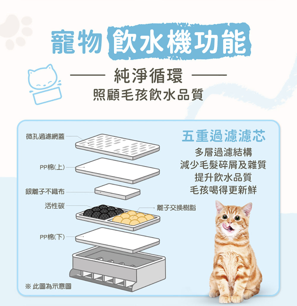 • 微孔過濾網蓋、PP棉、活性碳、離子交換樹脂、銀離子不織布