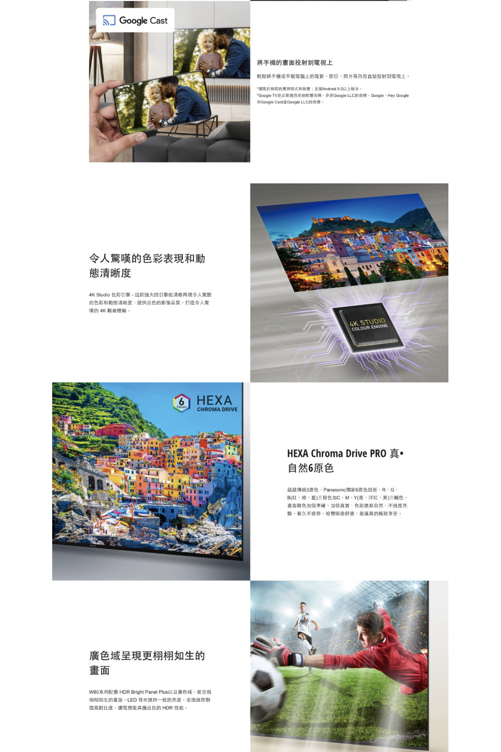 Panasonic W80 系列 4K Google TV™ 搭載HDR Bright Panel Plus ,讓您在觀賞各種串流節目時能體驗更豐富的色彩和亮度。