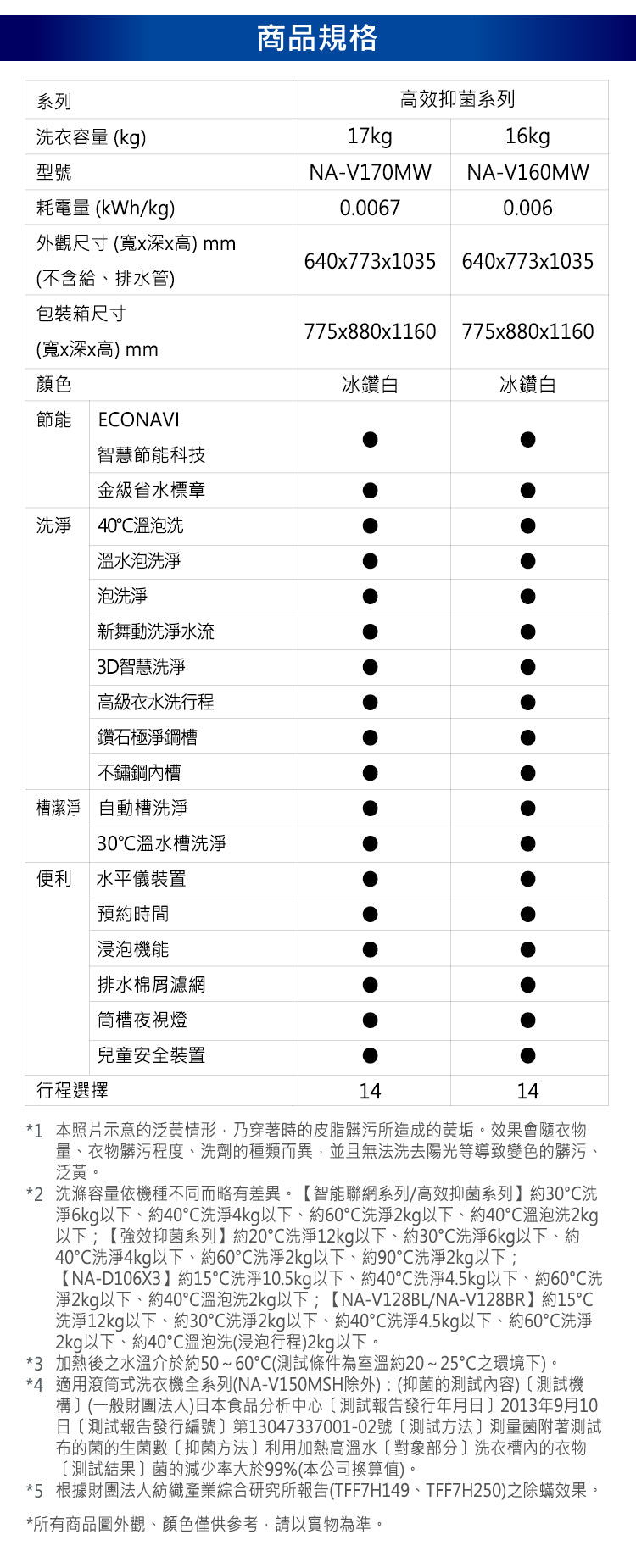 Panasonic 國際牌|NA-V170MW 17公斤高效抑菌變頻溫水滾筒洗衣機
