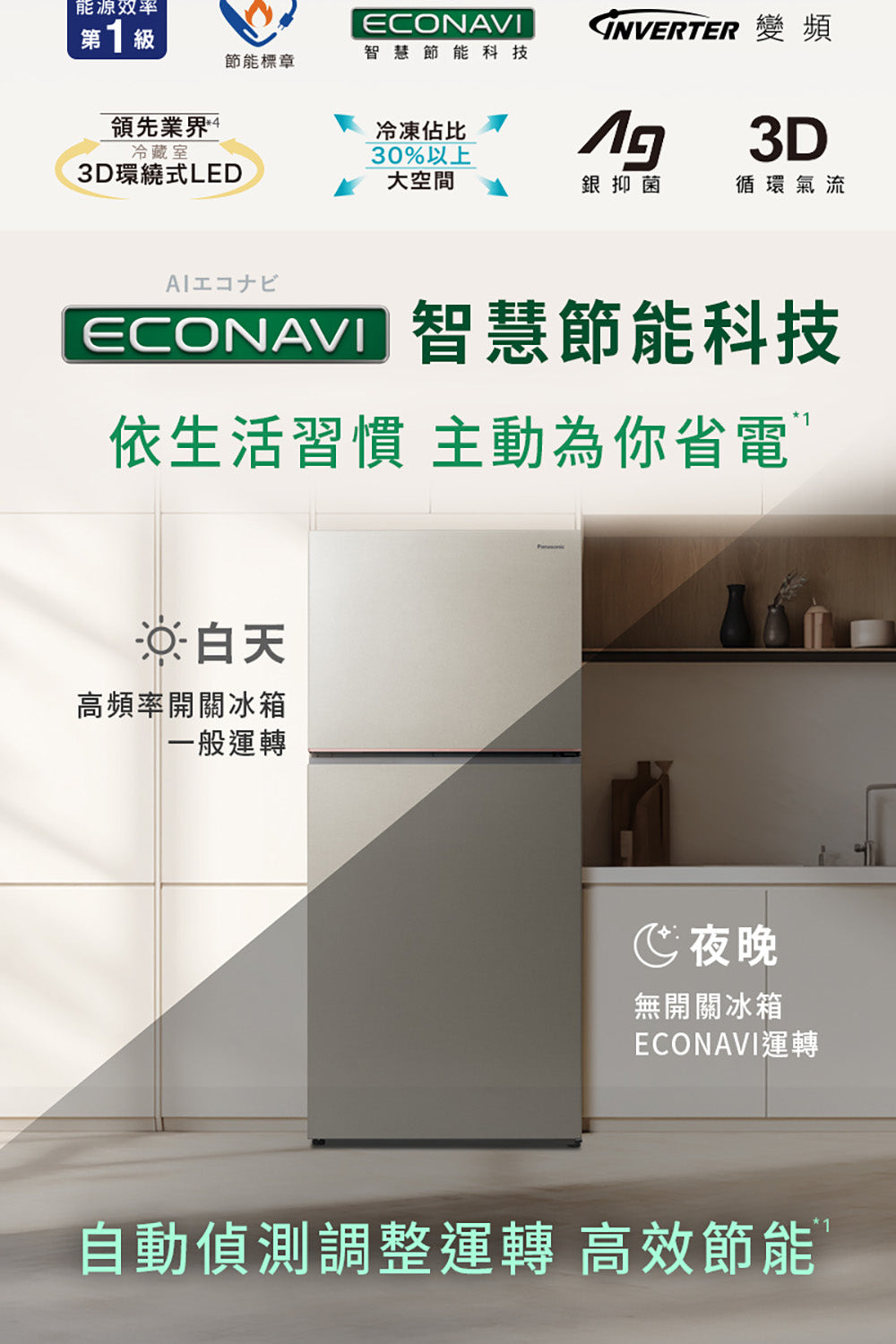 Panasonic 國際牌|NR-B656TV-W 650L新一級能效智慧節能雙門變頻冰箱(燦雪白)
