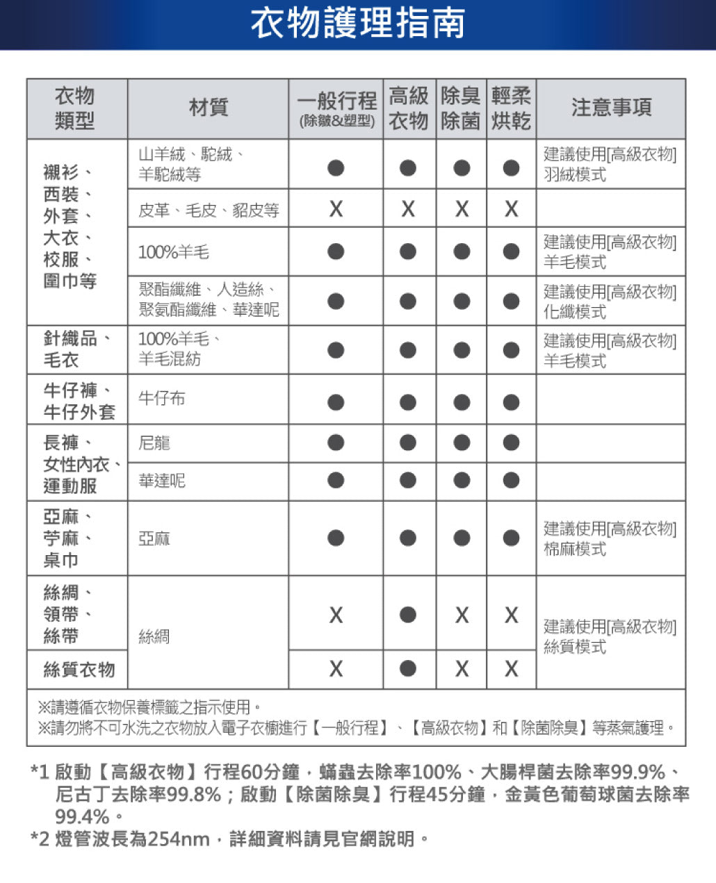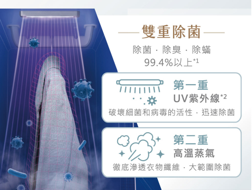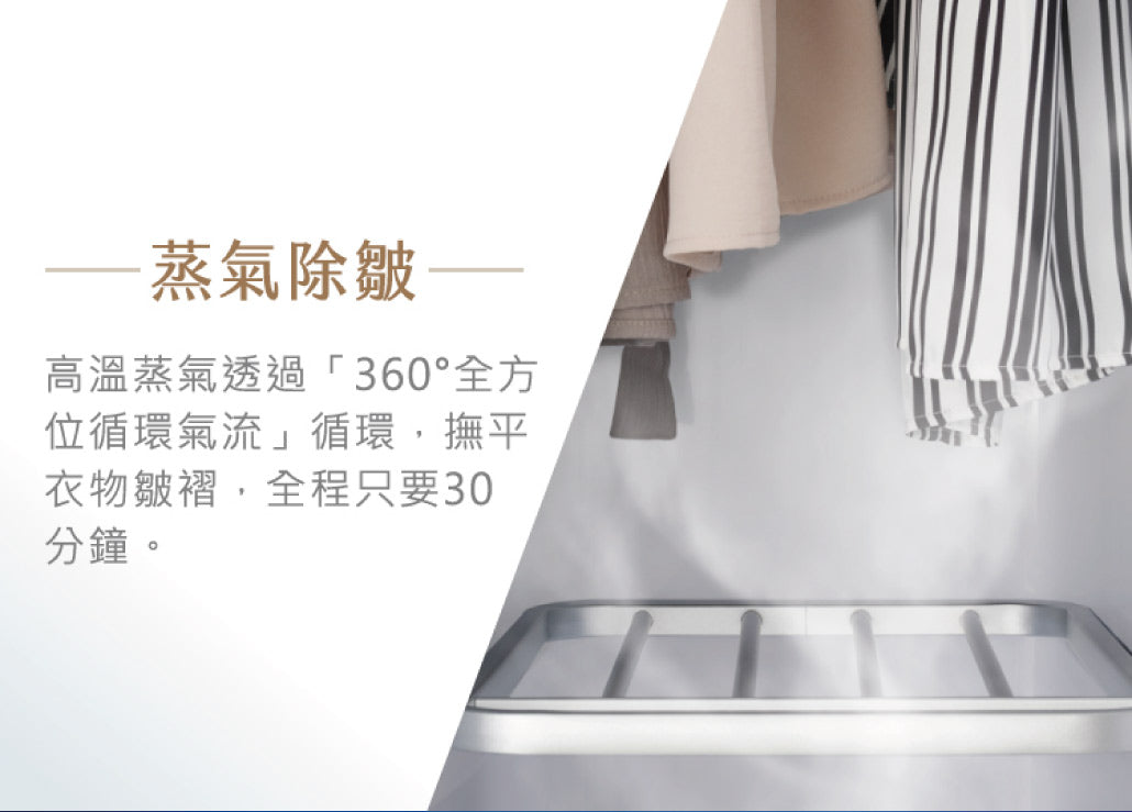 ●UV紫外線+高溫蒸氣 雙重除菌 ●去除異味 ●輕柔烘乾 ●蒸氣除皺