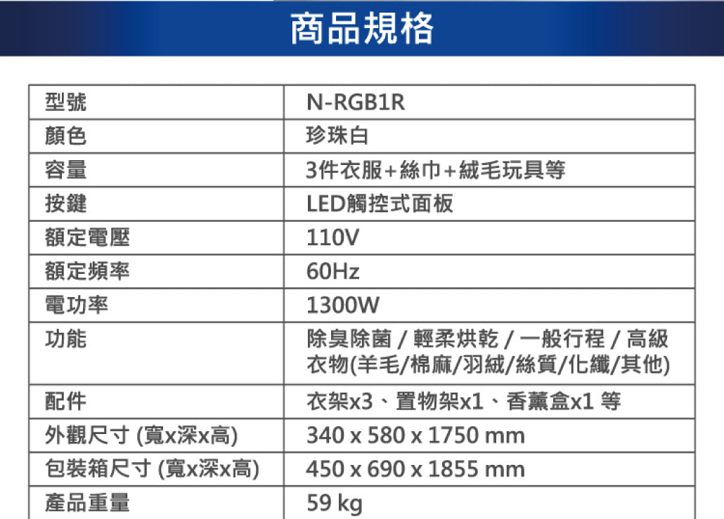Panasonic 國際牌| N-RGB1R 健康護衣電子衣櫥
