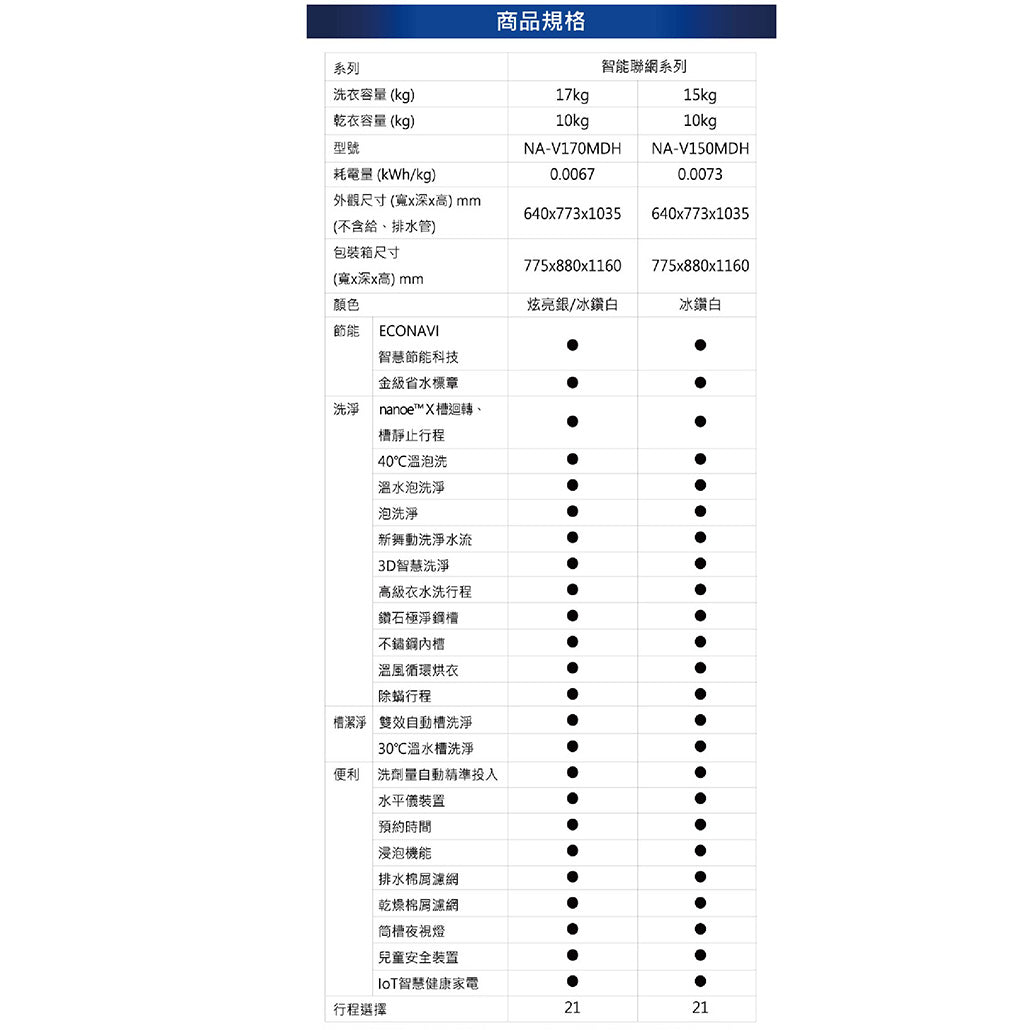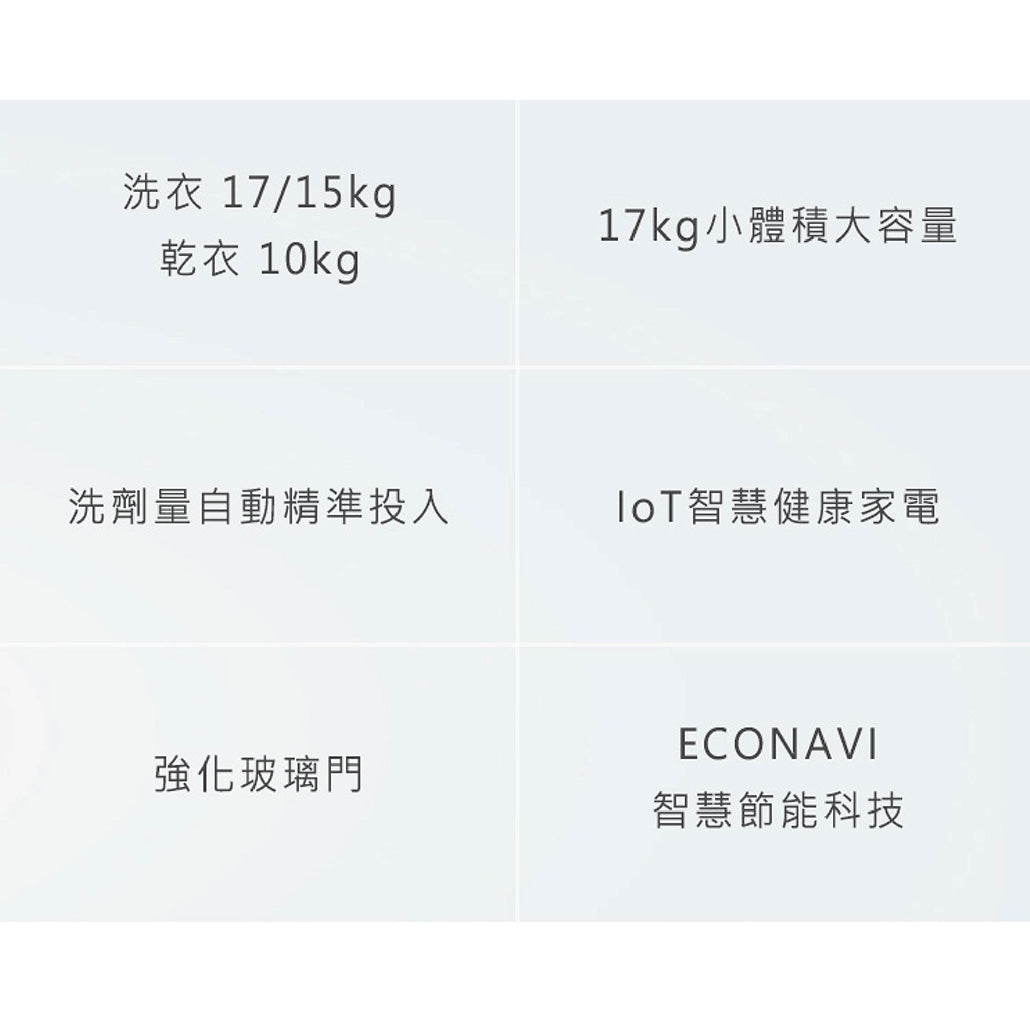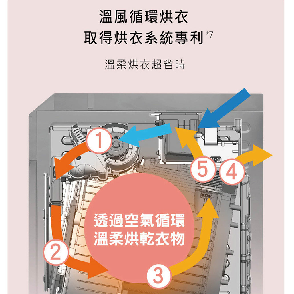 •洗劑量自動精準投入 •溫風循環烘衣科技 •3D智慧洗淨