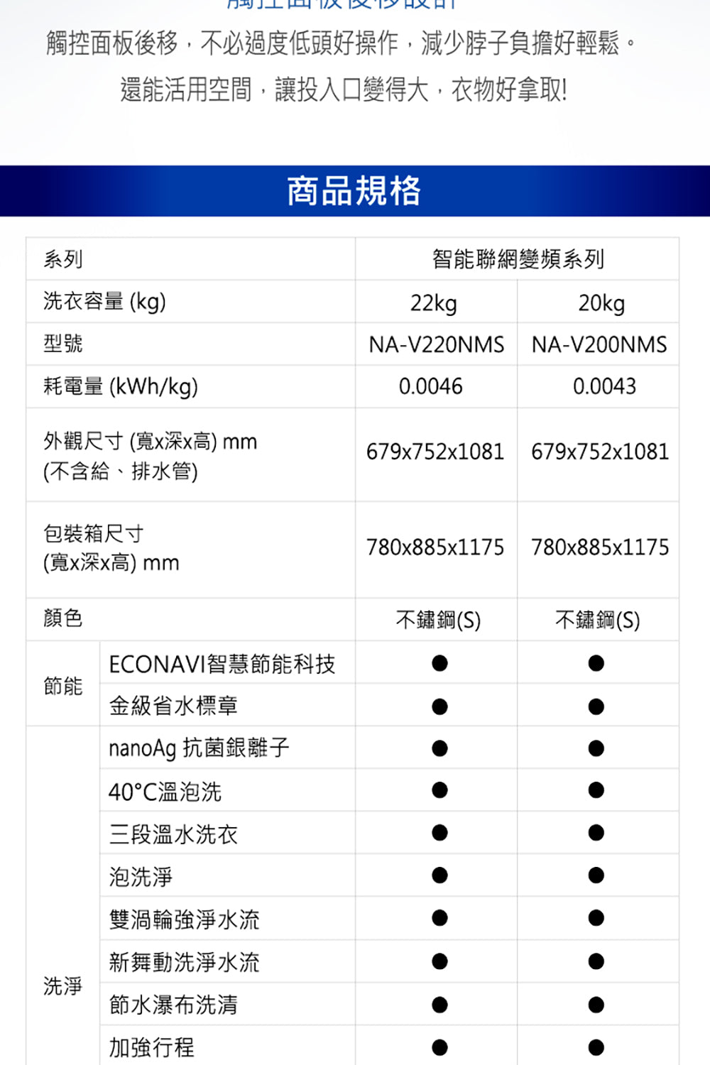 Panasonic 國際牌|NA-V200NMS 20公斤IOT智慧家電雙科技溫水洗淨變頻洗衣機