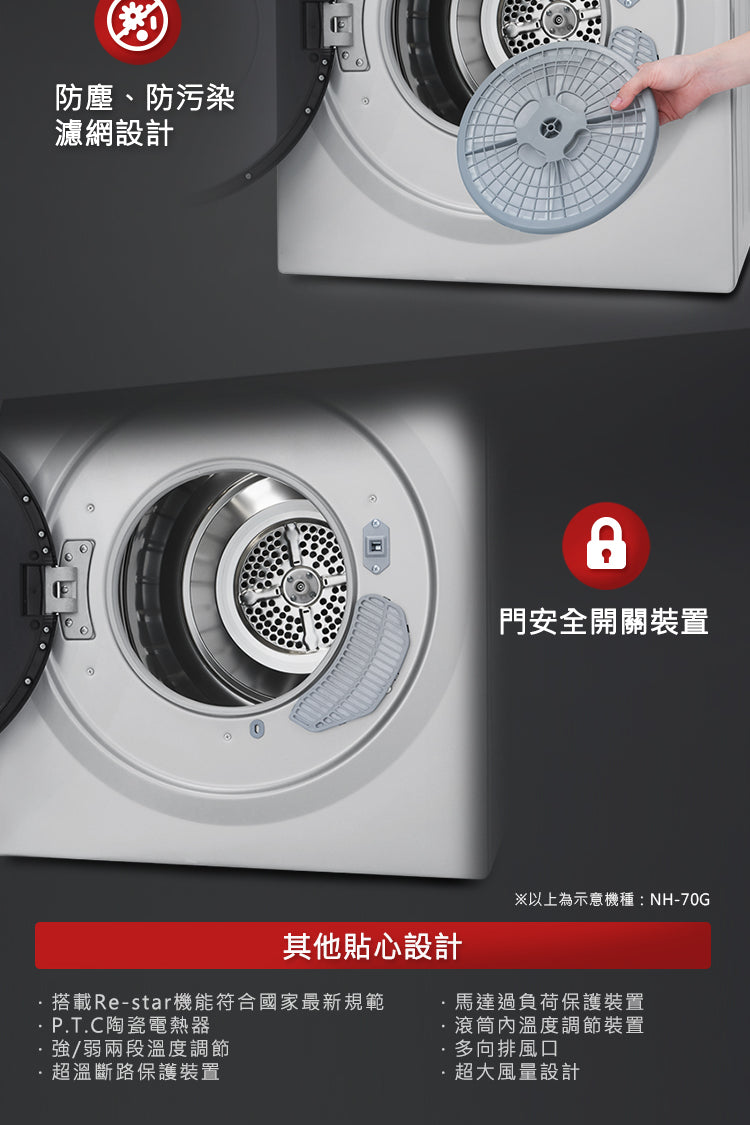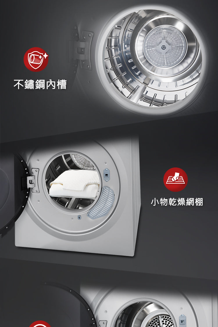滾筒內溫度調節裝置 防塵、防汙染濾網設計 內槽採不鏽鋼設計