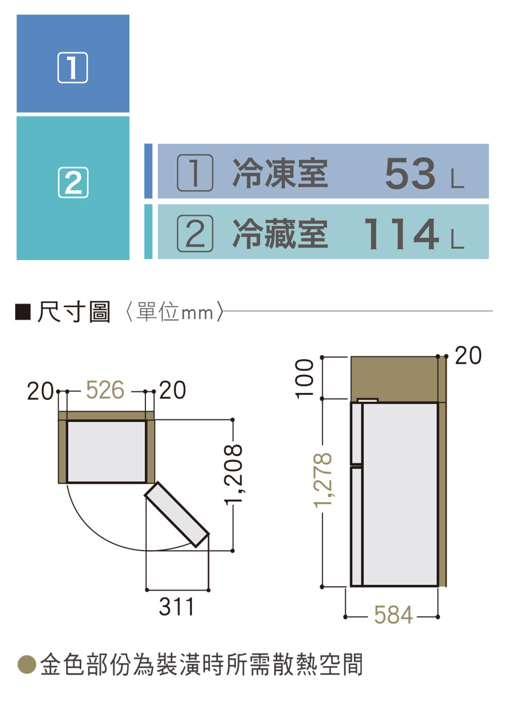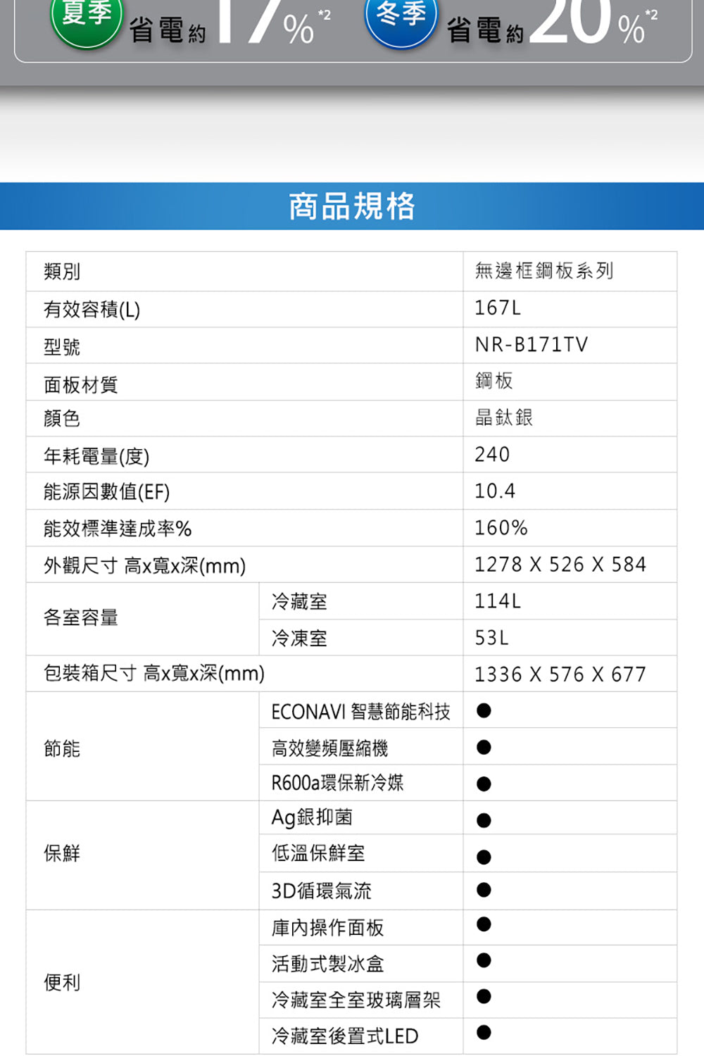 ● 有效容積167L ● 冷凍大空間 ● Ag銀抑菌 ● ECONAVI智慧節能科技 ● 新1級能源效率